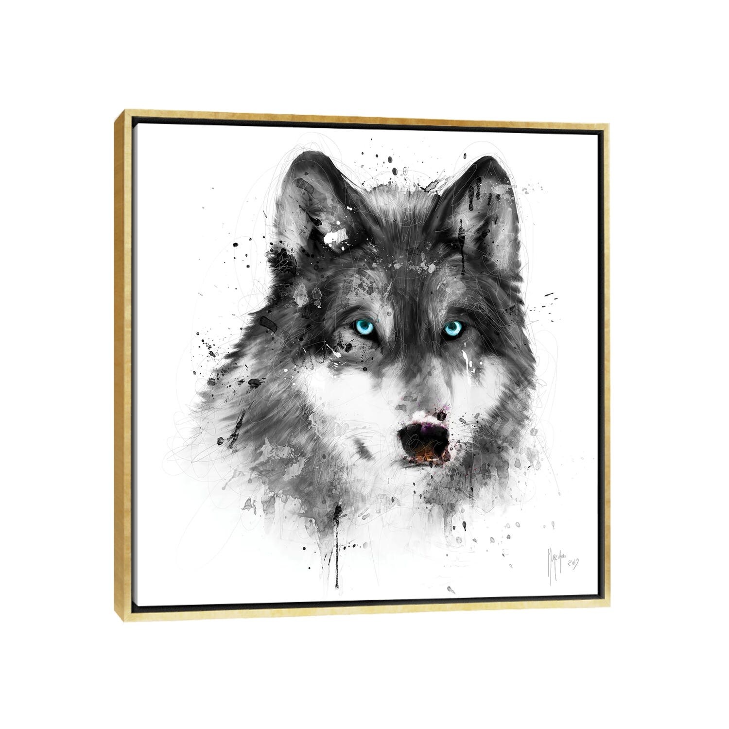 iCanvas "Splatter White Wolf" by Denis Orio Ibanez Framed