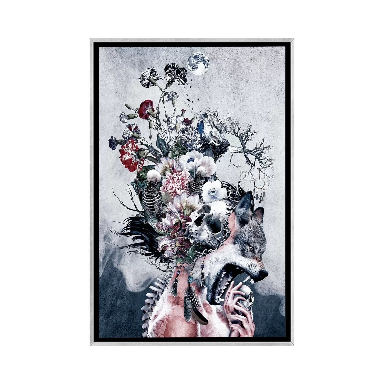 iCanvas "Wolf And Skulls" by Riza Peker Framed