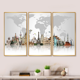 Designart "Famous Monuments Across World" Cityscape Framed Canvas Wall Art Set of 3 - 4 Colors of Frames
