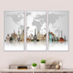 Famous Monuments Across World - Art Canvas Print - Grey
