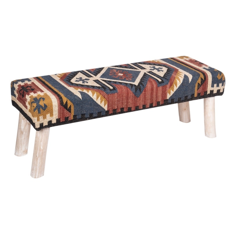 HERAT ORIENTAL Handmade Kilim Upholstered Bench - 16"x18"x48"