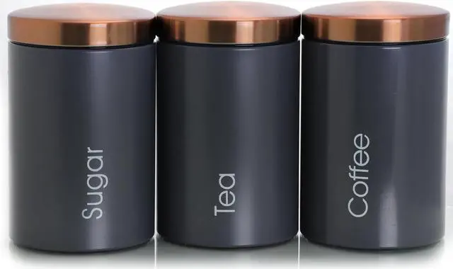MegaChef Essential Kitchen Storage 3 Piece Sugar, Coffee and Tea Canister Set in Matte Gray