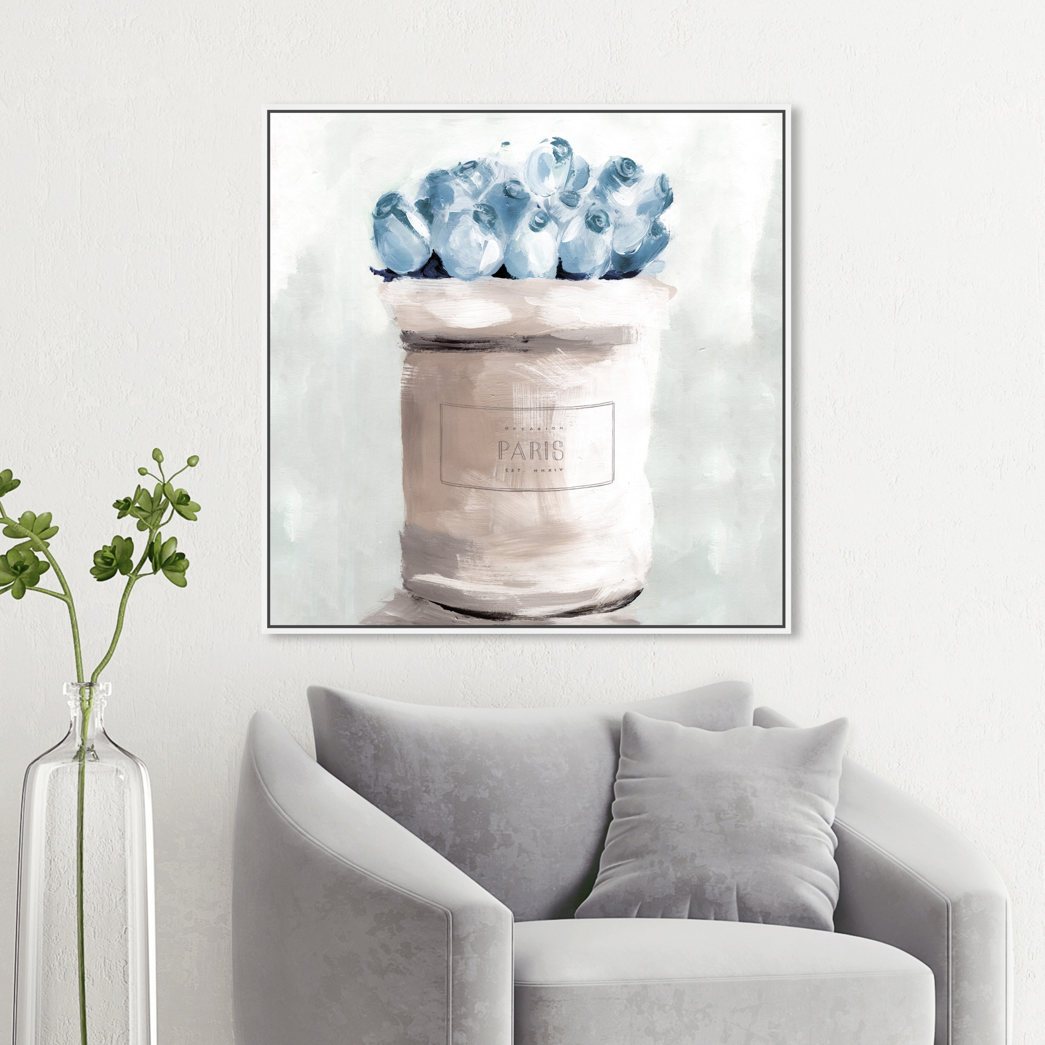 Oliver Gal 'Blue Flowers From Paris Square' Floral and Botanical Wall Art Framed Canvas Print Florals - Blue, White