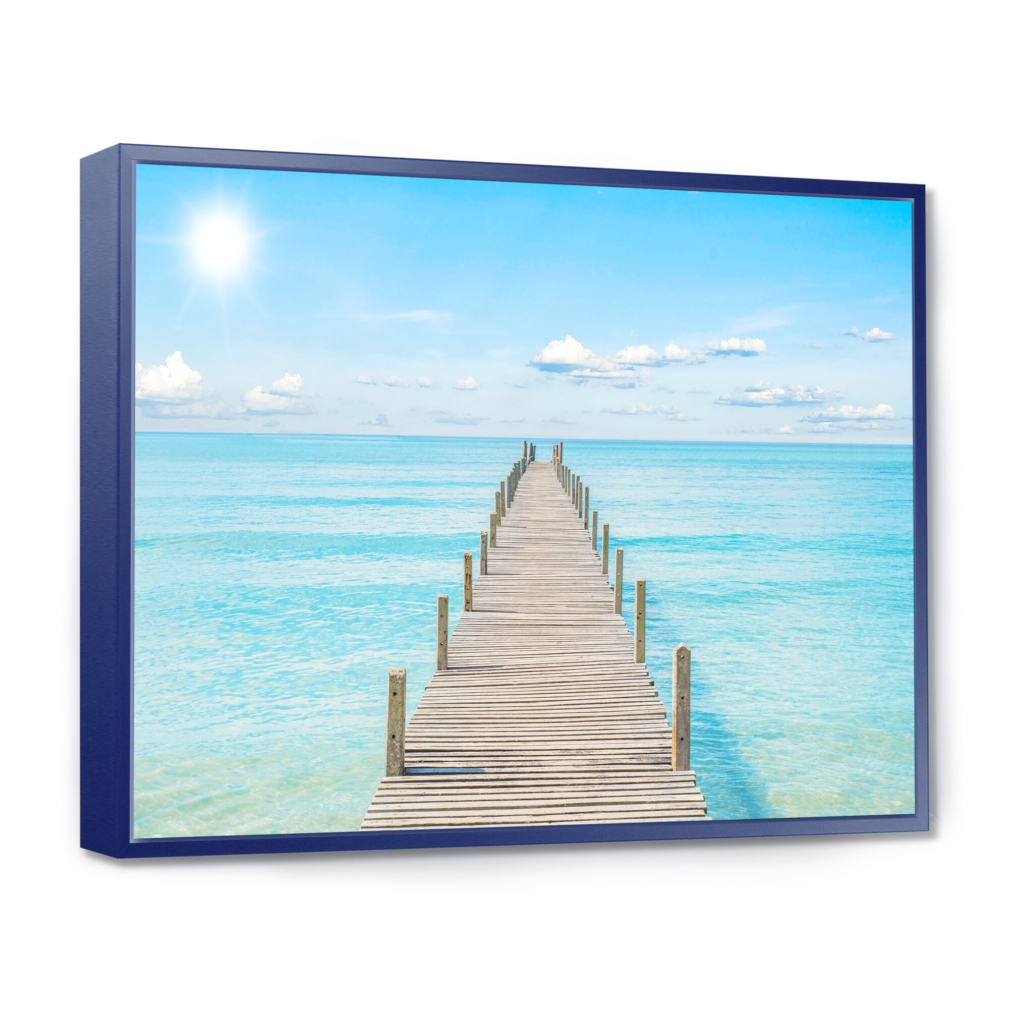 Designart "Pier Infinite to the Sea" Seascape Framed Canvas Art Print