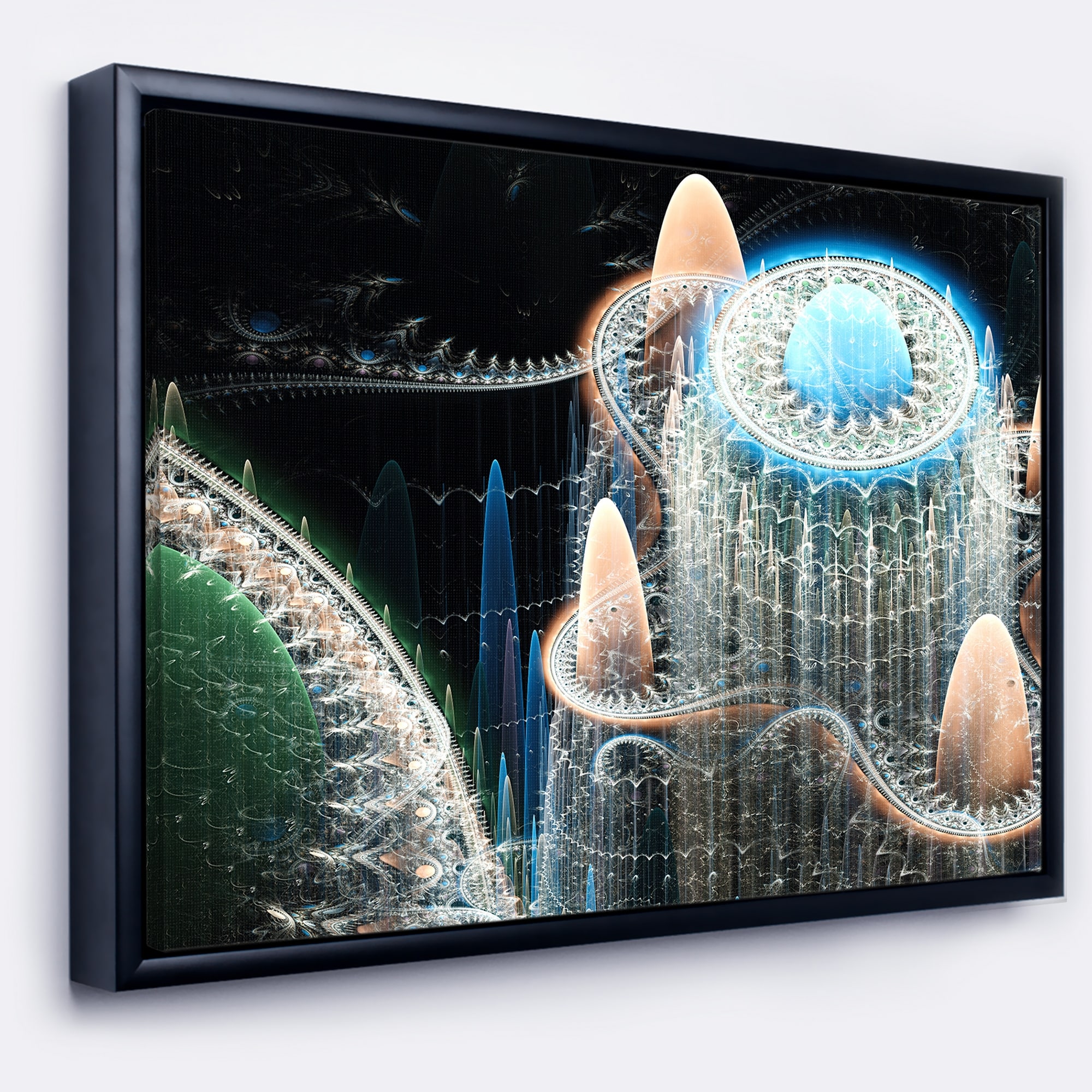 Designart "Blue Fractal Infinite World" Abstract Art on Framed Canvas