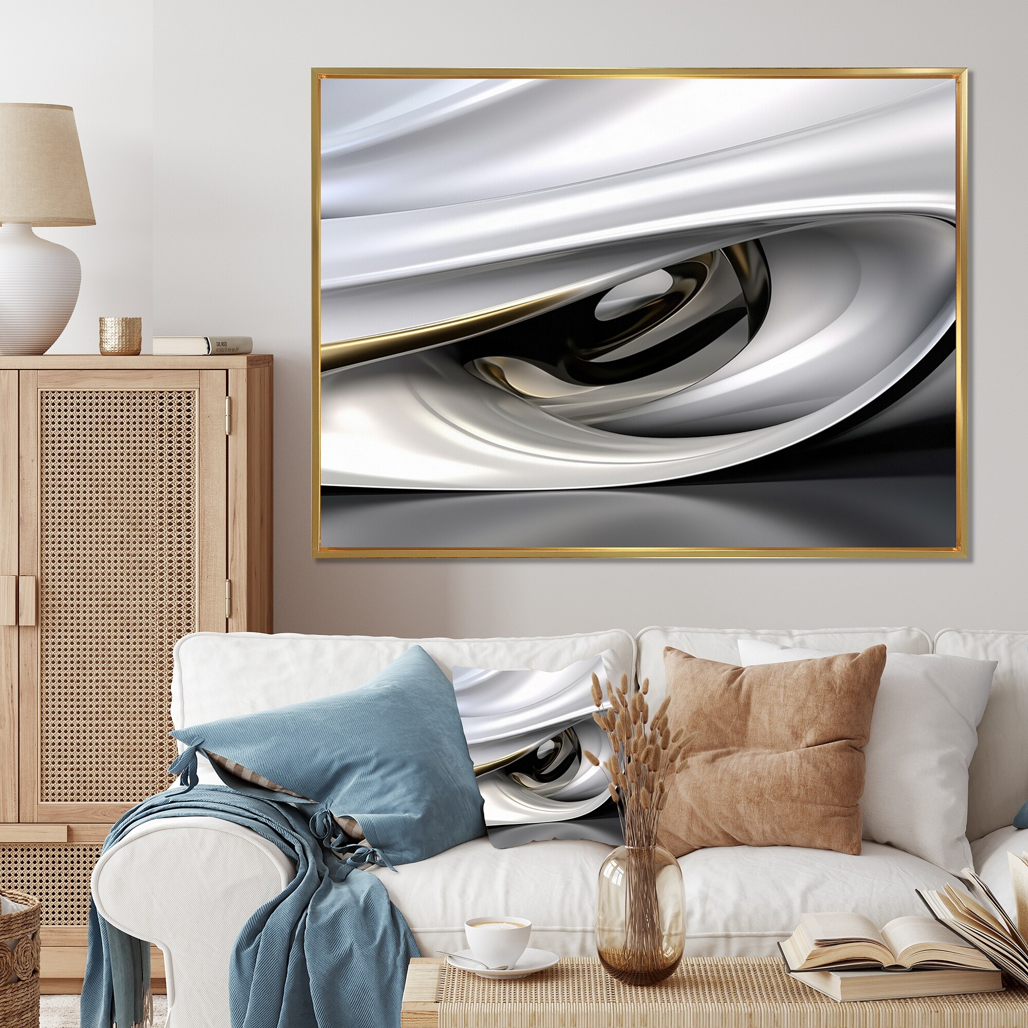 Designart "Gold White Infinite Ripples" Modern Waves Framed Canvas Wall Art