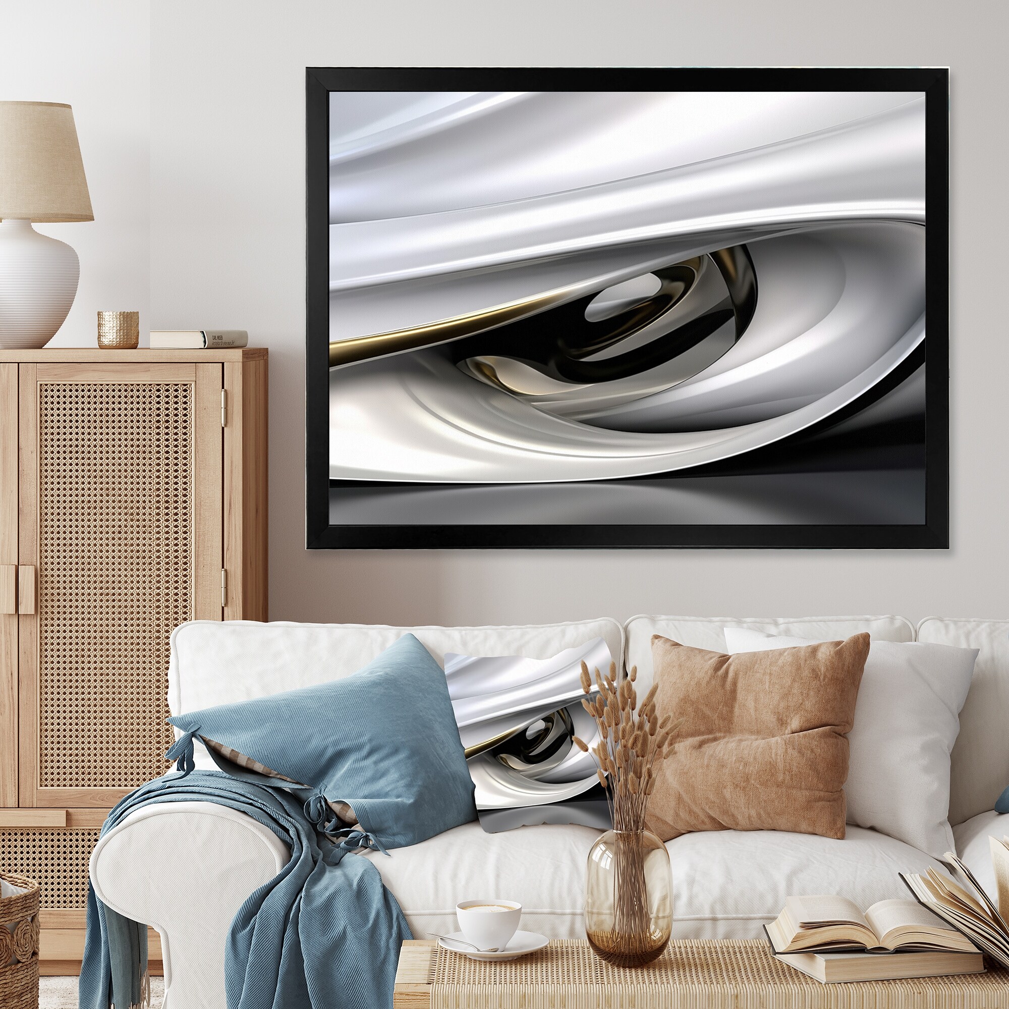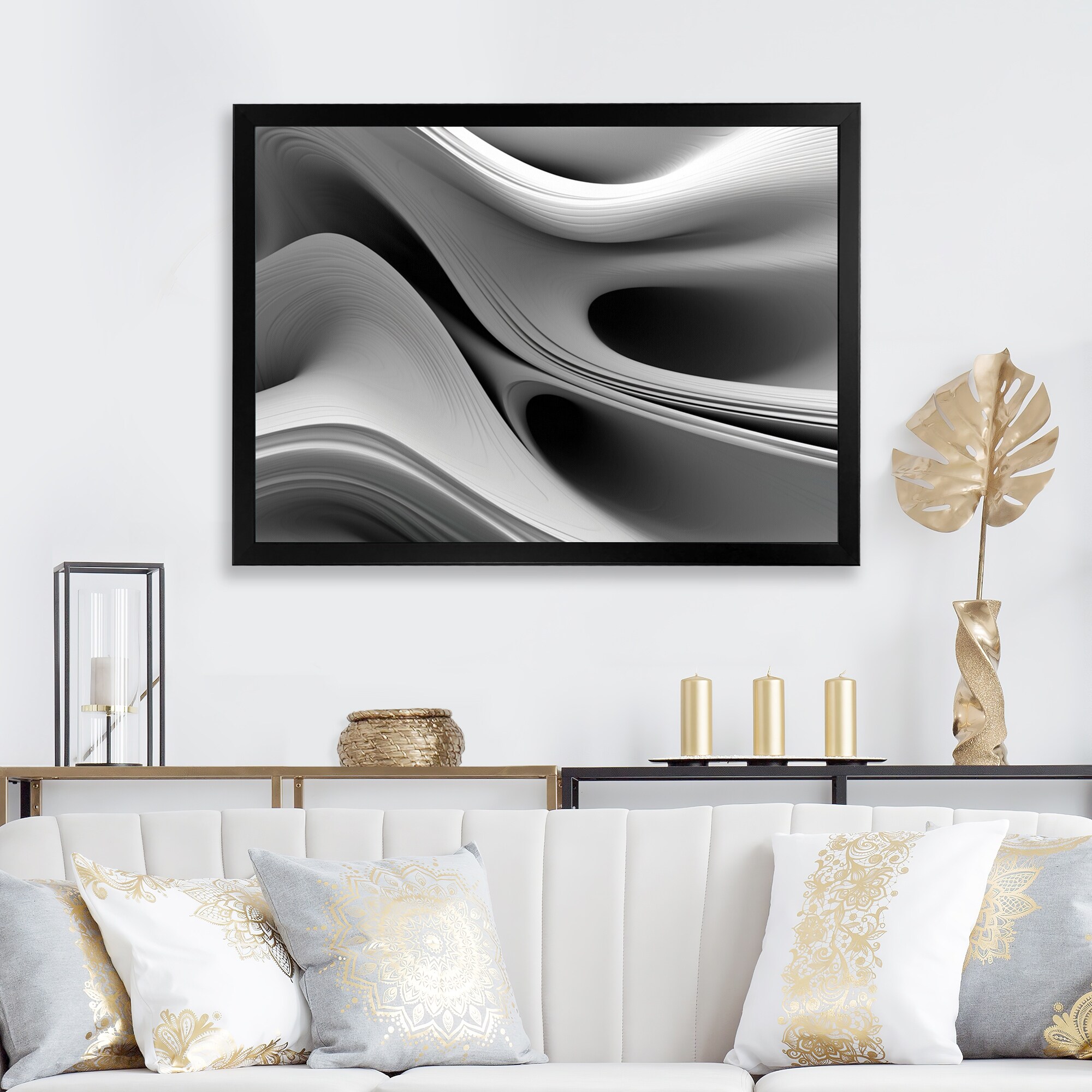 Designart "White Black Infinite Ripples" Modern Waves Framed Canvas Prints