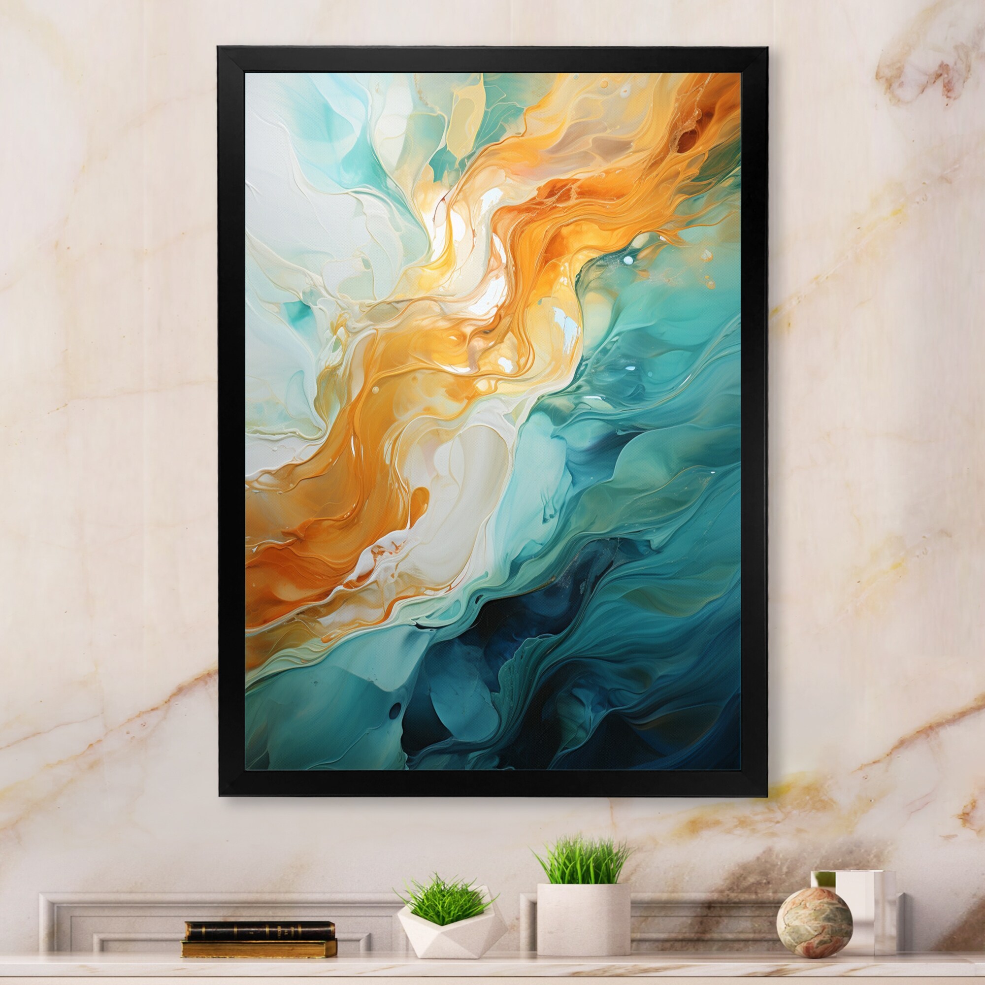 Designart "Yellow Teal Abstract Fractal Infinite Ripples" Fractals Framed Canvas Prints