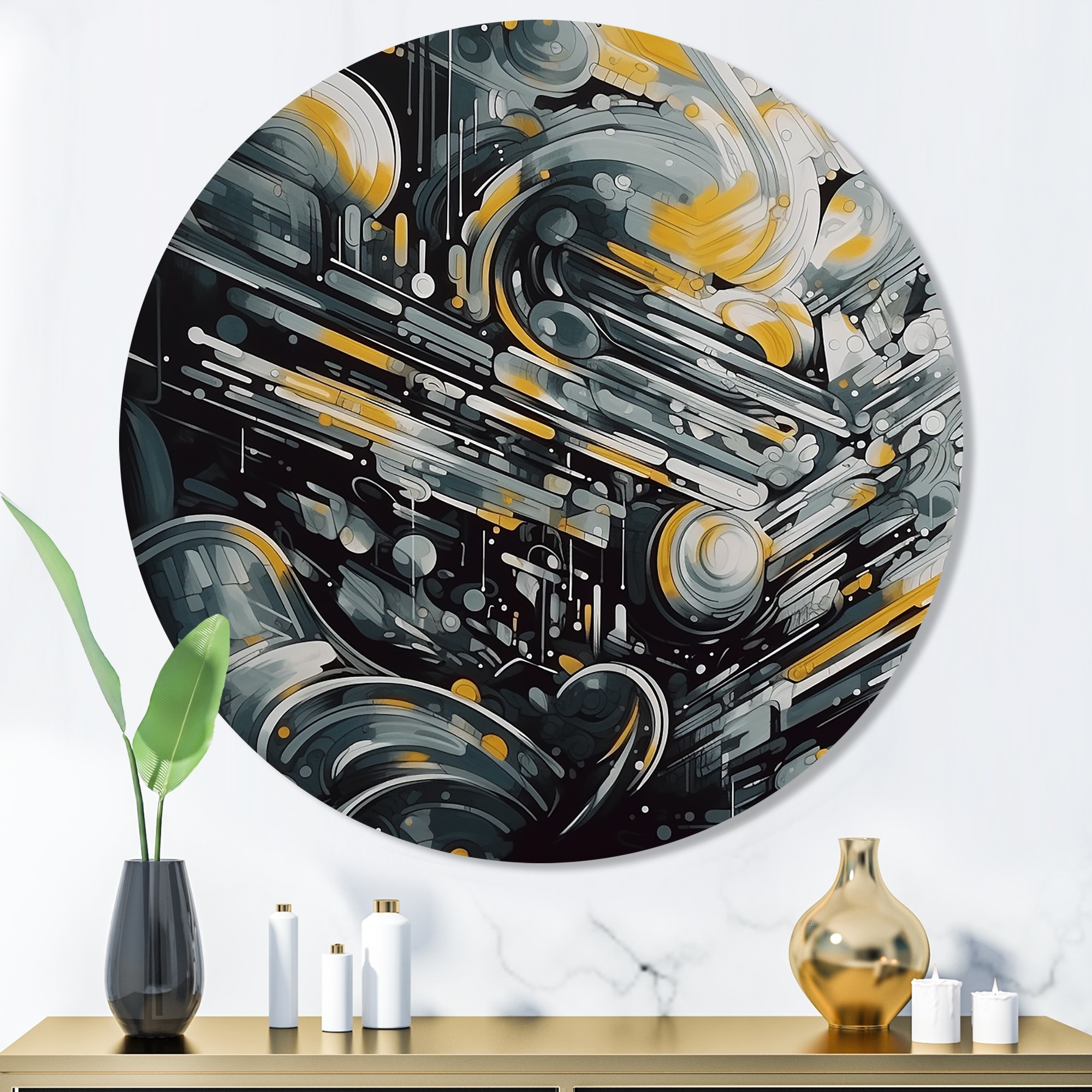Designart "Grey And Yellow Infinite Geometry I" Modern Geometric Metal Round Wall Art