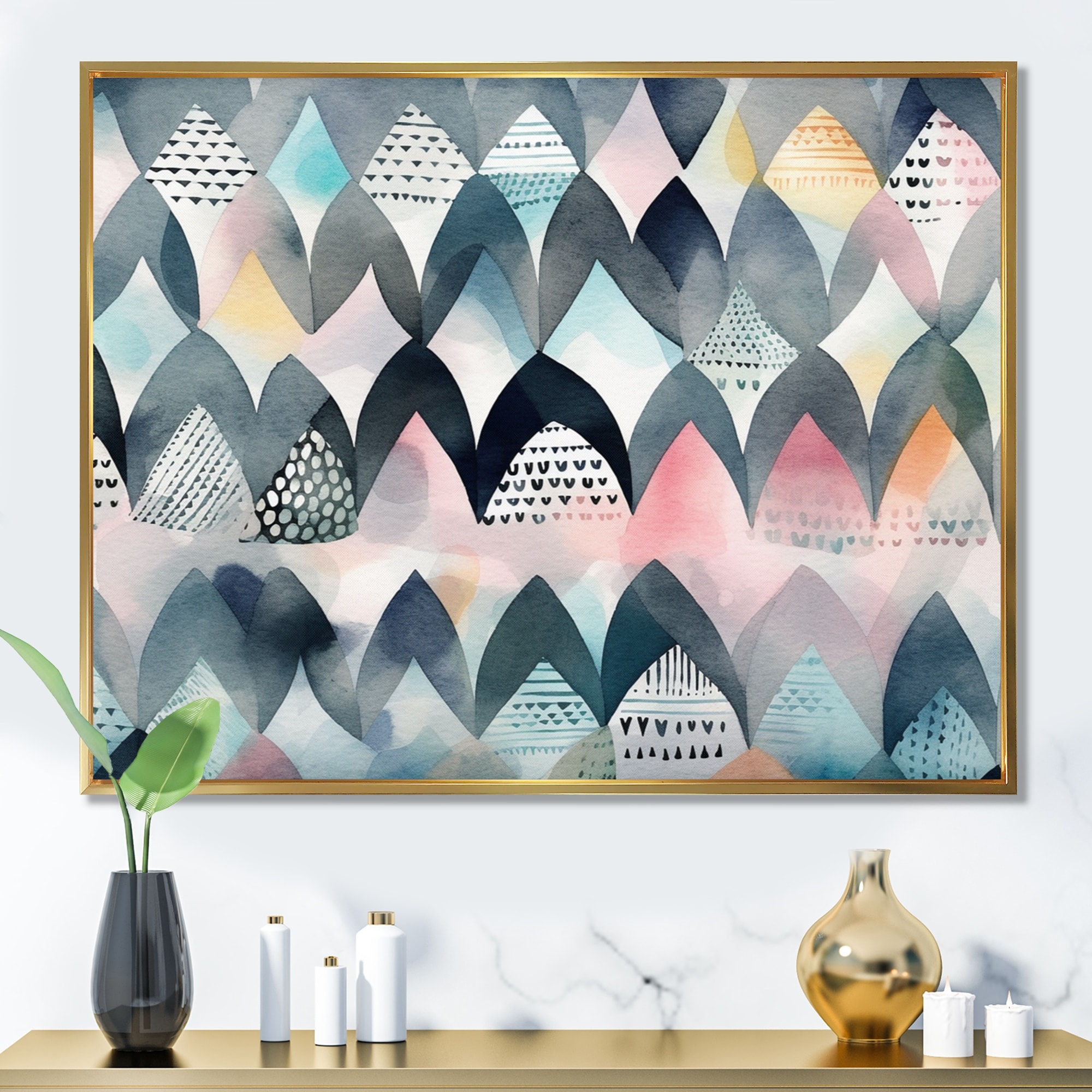 Designart "Blue And White Infinite Geometry Ii" Modern Geometric Framed Canvas Print