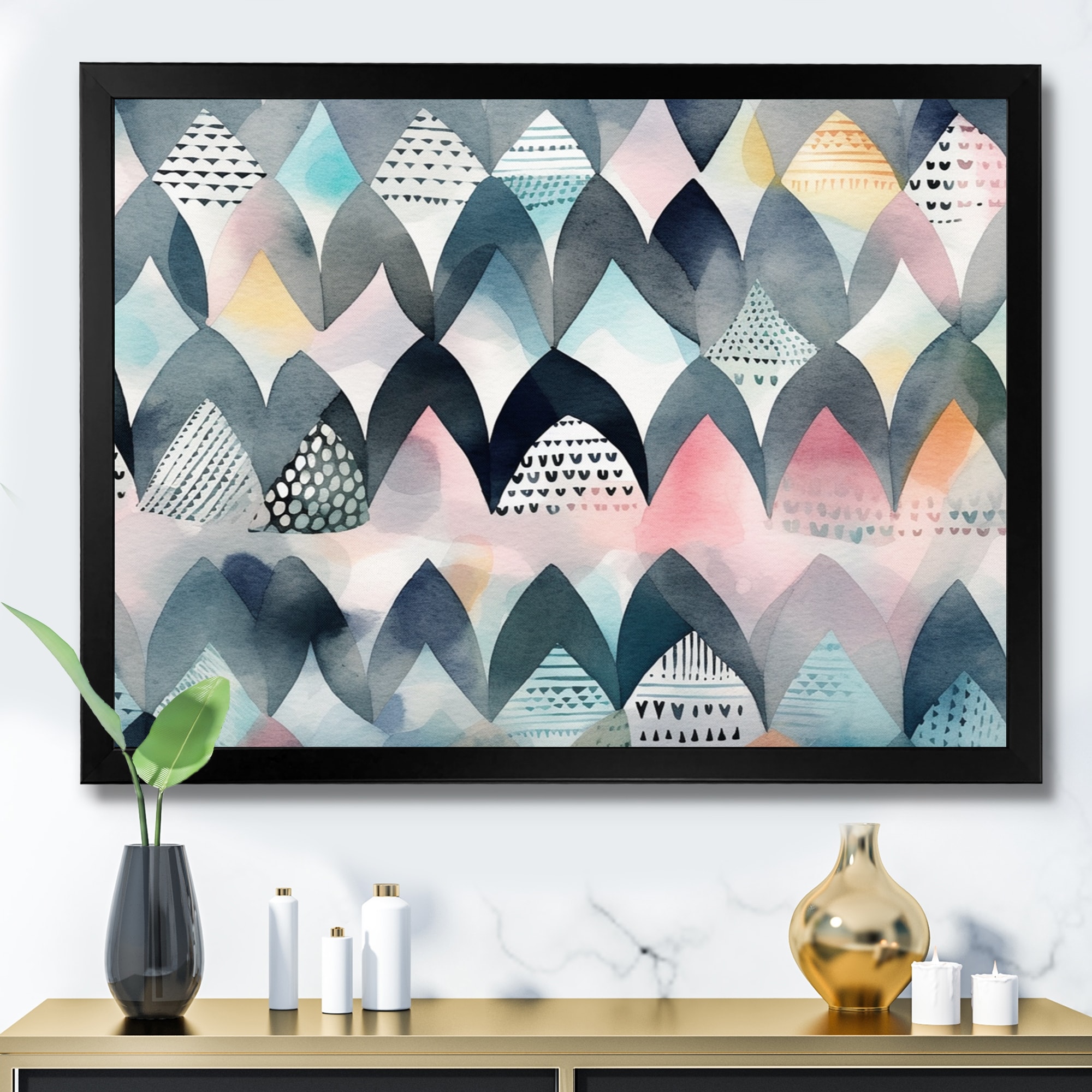 Designart "Blue And White Infinite Geometry I" Modern Geometric Framed Wall Decor