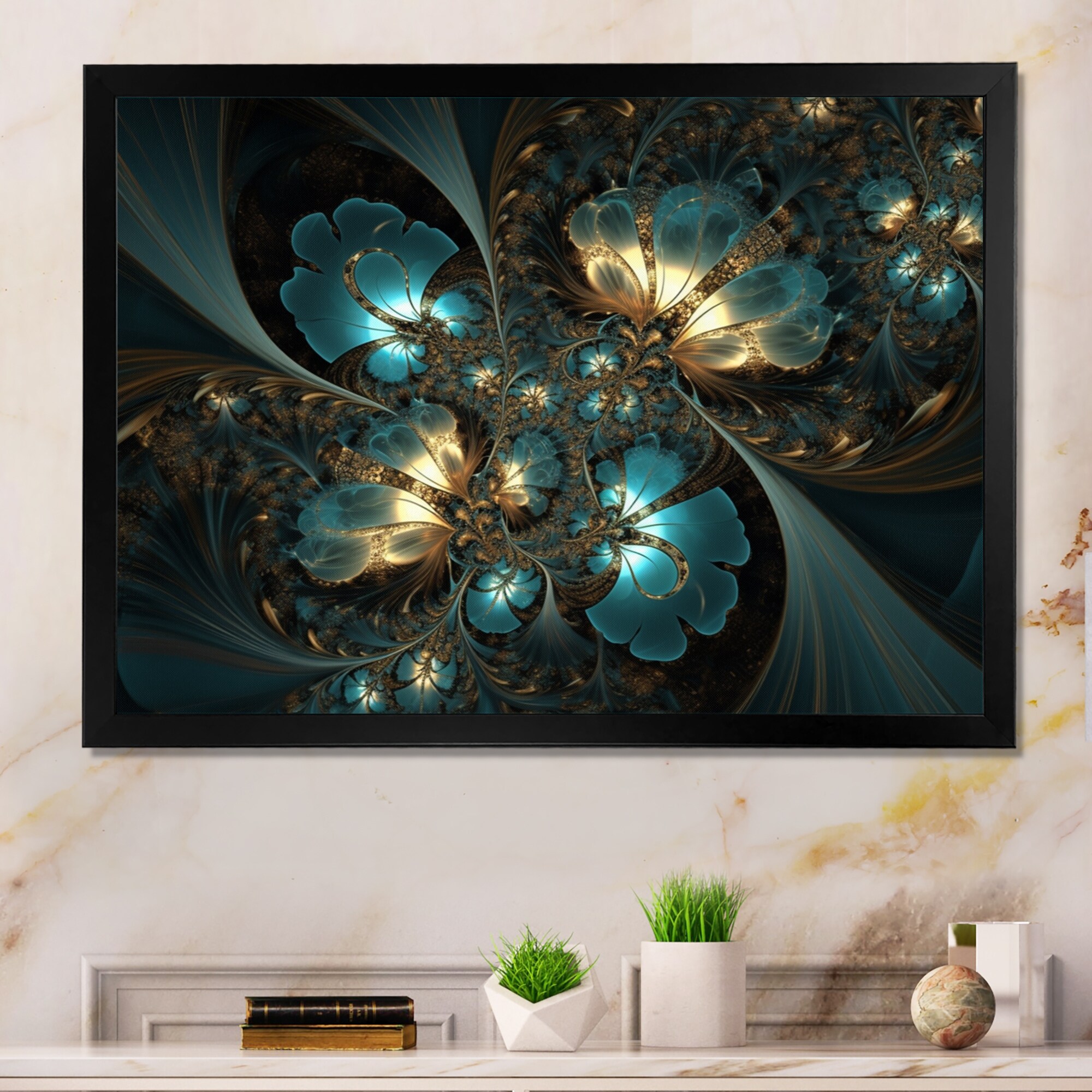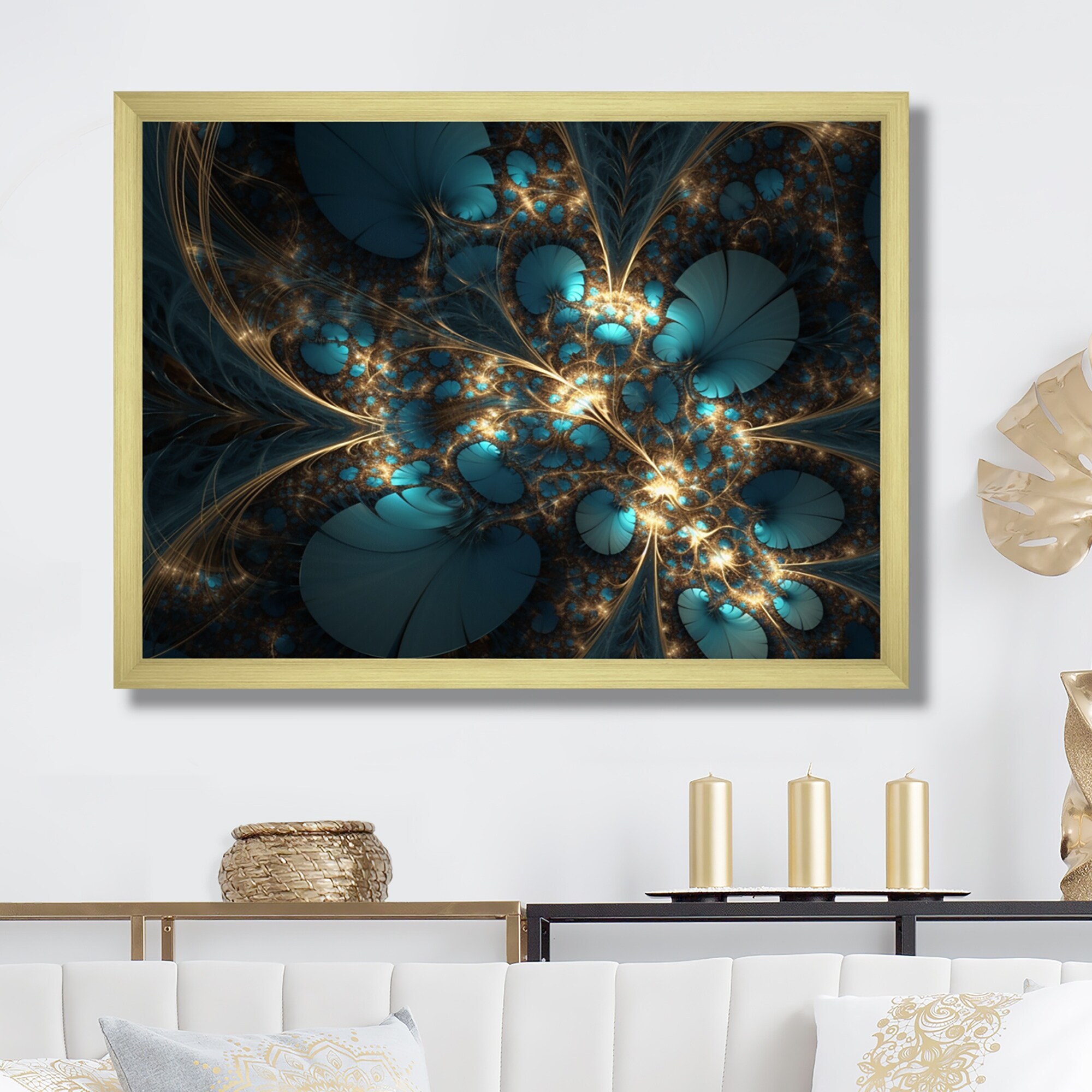 Designart "Blue And Gold Melodies of Infinite Order Ii" Abstract Fractal Framed Canvas Art Print