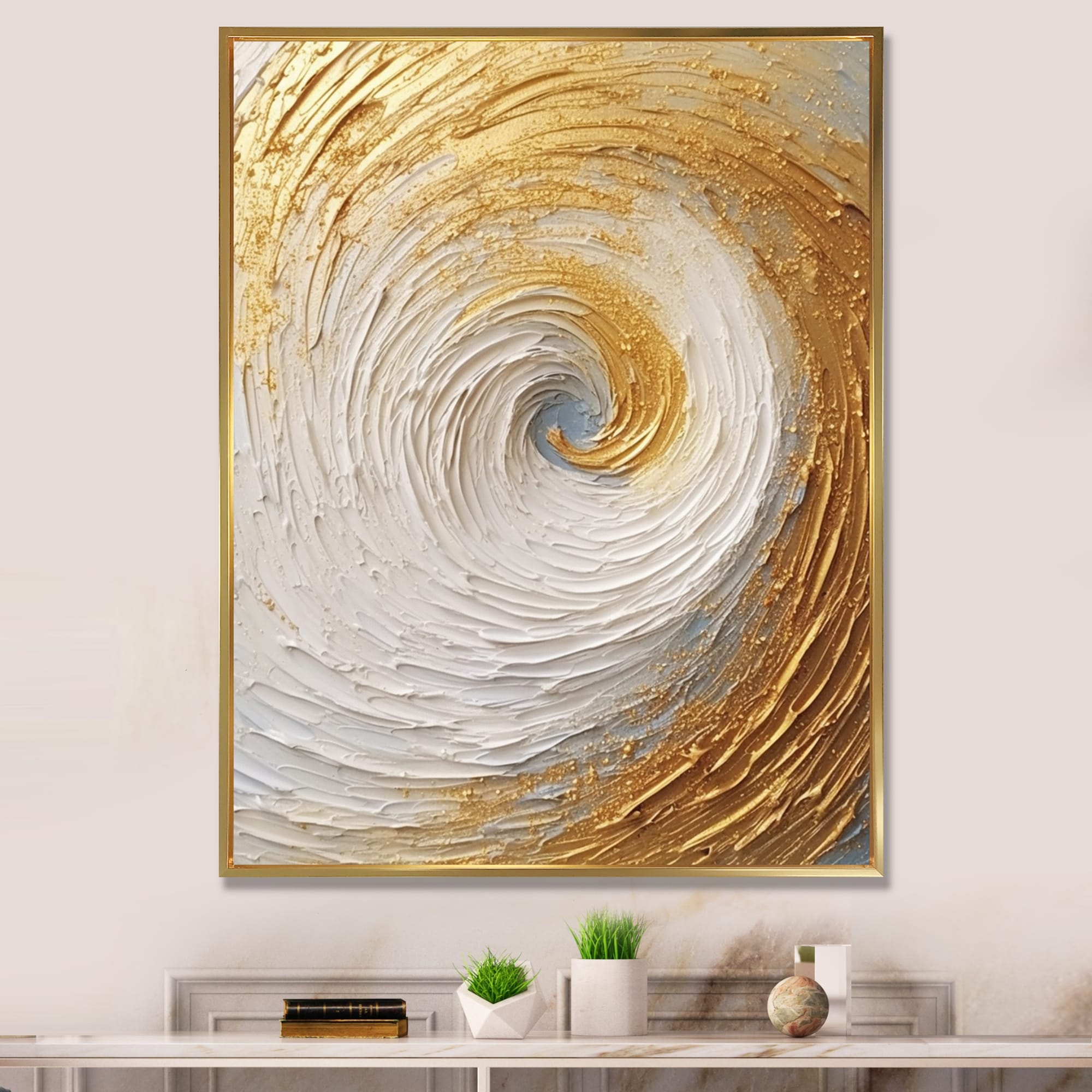 Designart "Gold Cream Infinite Swirls IV" Abstract Spirals Framed Wall Art Living Room