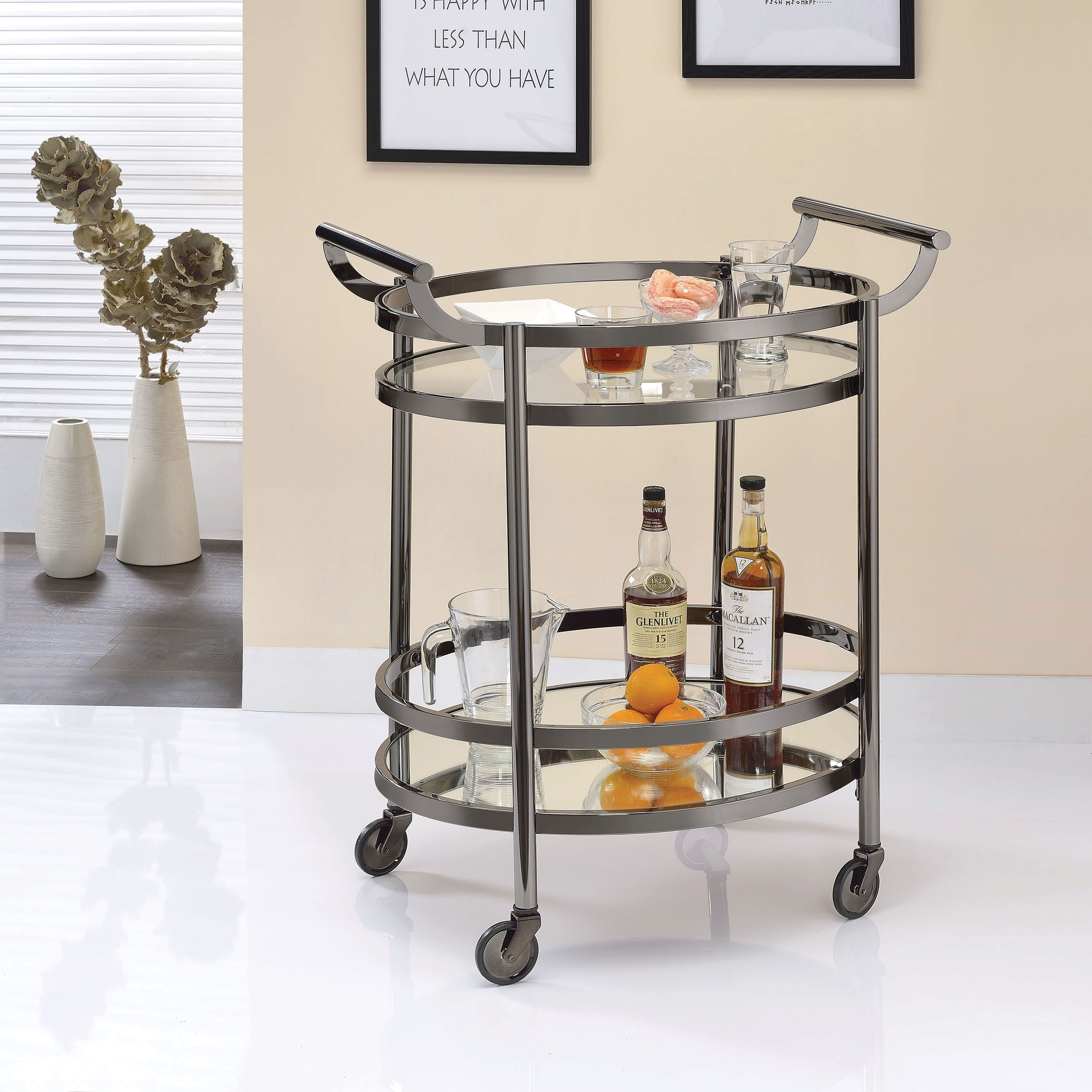 Oval Serving Cart with 2 Tempered Glass Glass Shelves, Kitchen Cart with Caster Wheels
