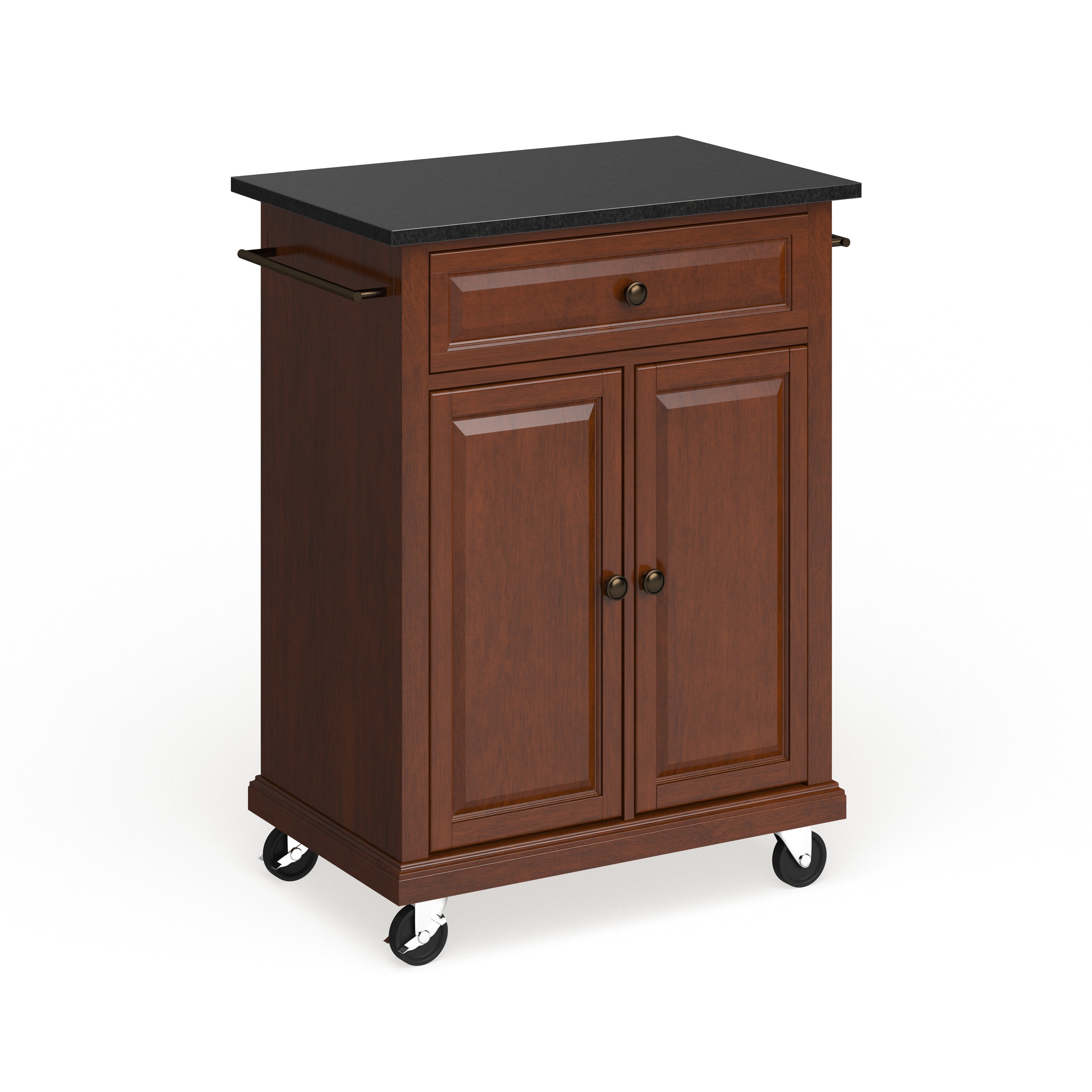 Compact Black Granite Top Portable Kitchen Cart/ Island in Classic Cherry Finish - N/A