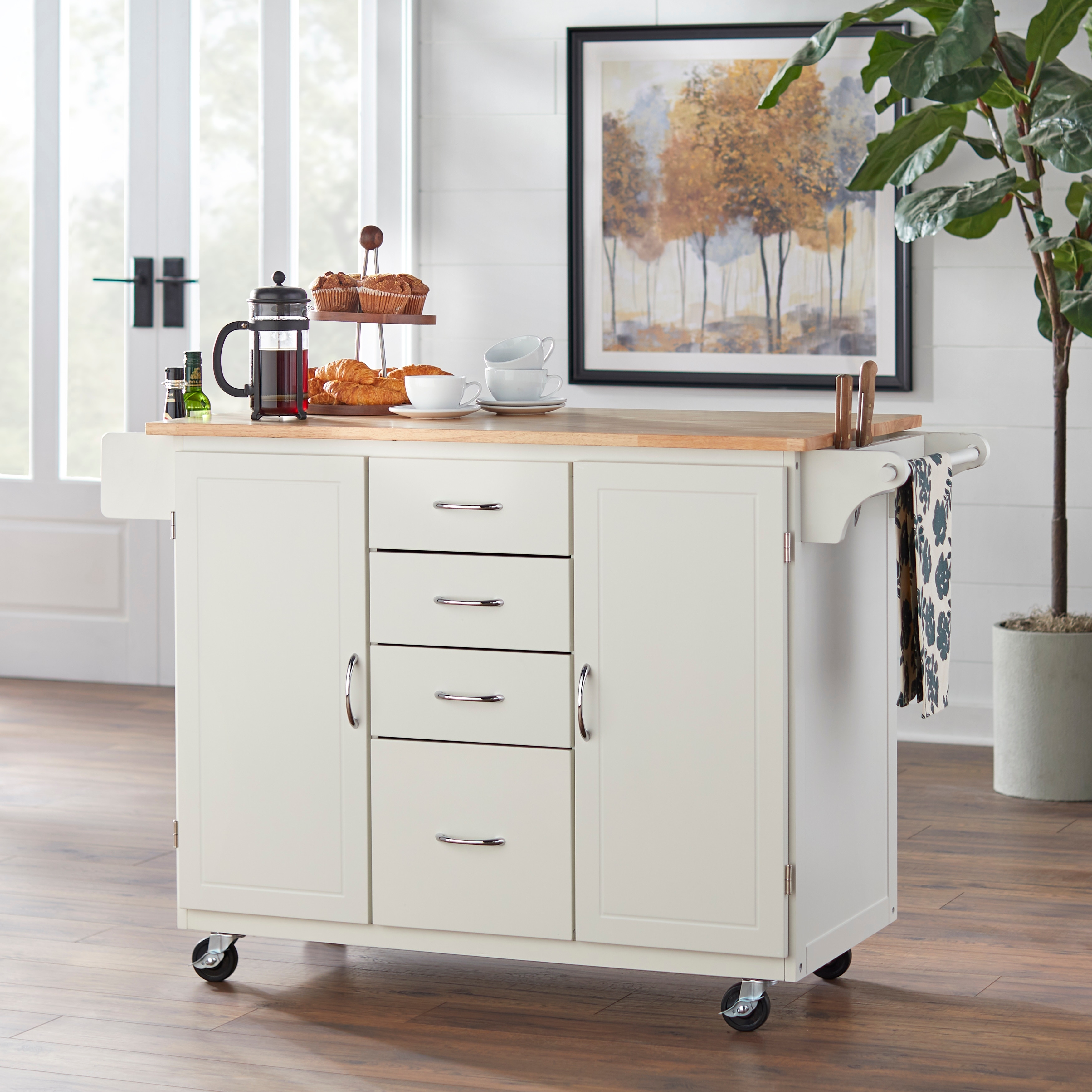 Kitchen Cart, Rubber Wood Top, Adjustable Shelf Inside Cabinet