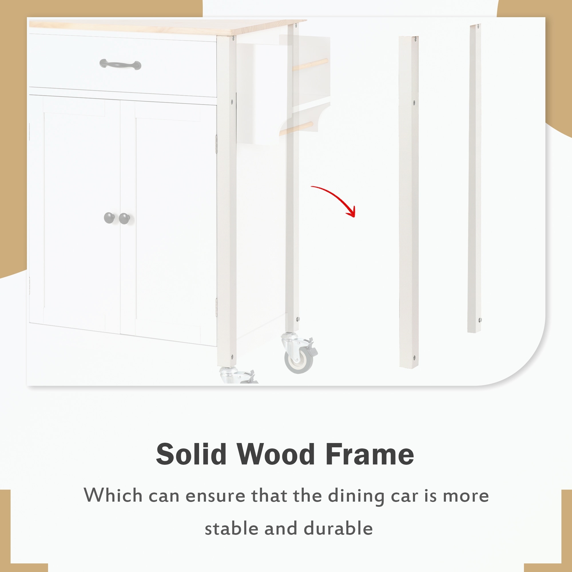 Kitchen Rolling Trolley Cart with Towel Rack Rubber Wood Table Top