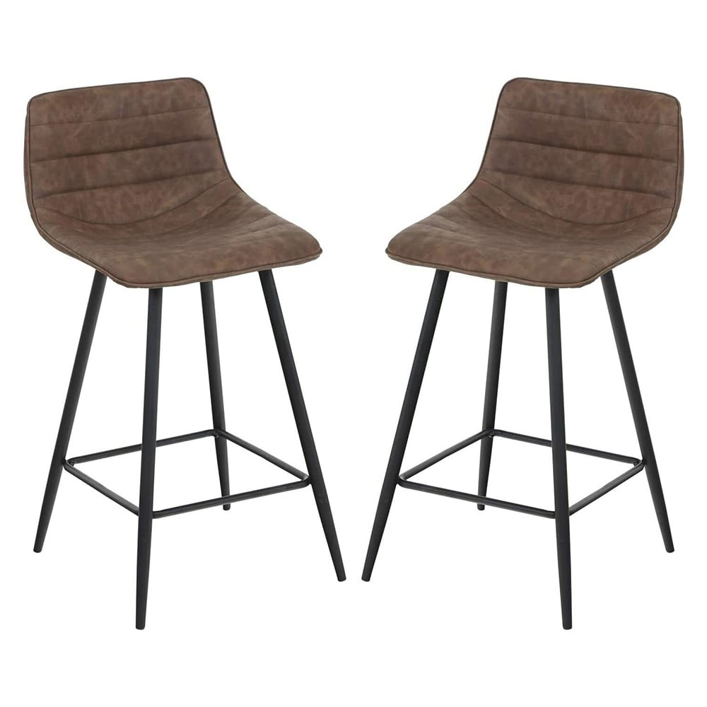 Set of 2 Bar Stools PU Leather Counter Stools Kitchen Dining Brown - 16.1x38.2