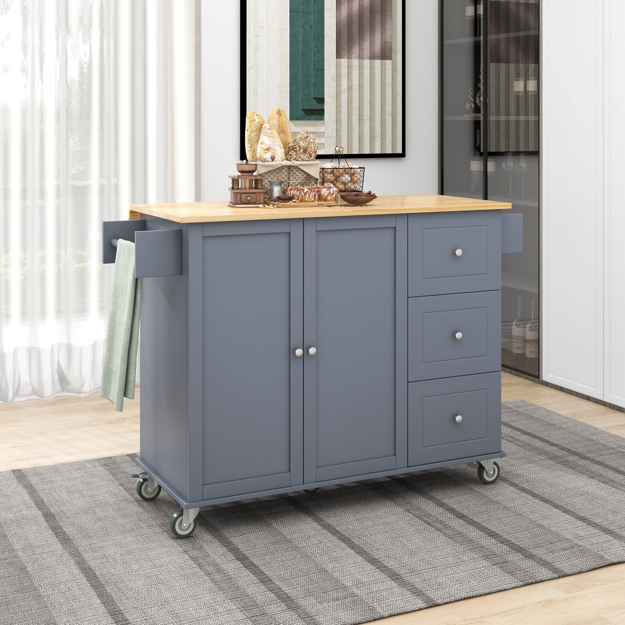 Kitchen Cart Rolling Kitchen Island with Drop-Leaf Countertop