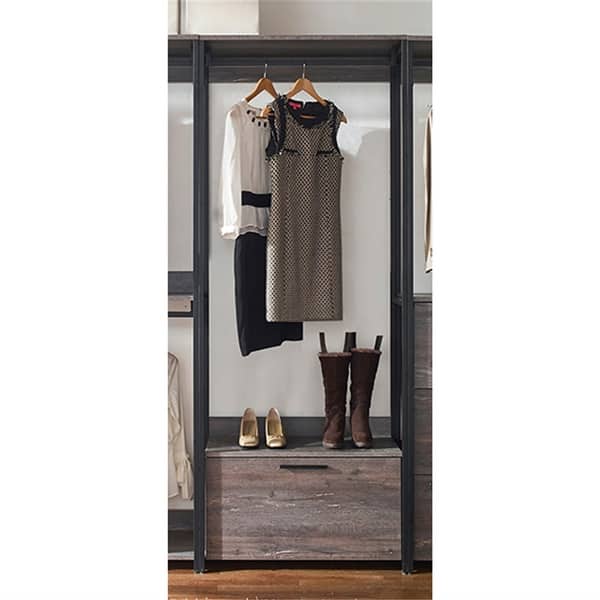 Veronica Wood Walk-in Closet with Three Drawers in Rustic Gray