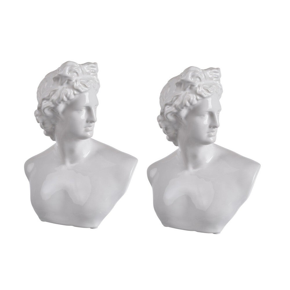 Julian Bust Statue, Glossy White Ceramic Torso, Large, Set of 2 - 9.3 H x 5.5 W x 7 L Inches