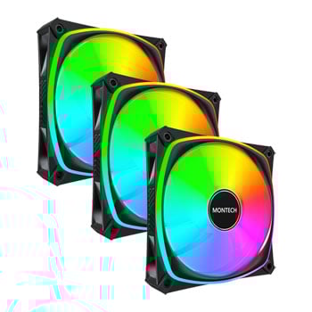 Montech RX120 Pro ARGB 120mm Black Reverse PWM Fan Triple Pack w/ Fan