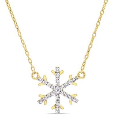 Miadora 18k Yellow Gold 1/6ct TDW Diamond Stationed Snowflake Necklace