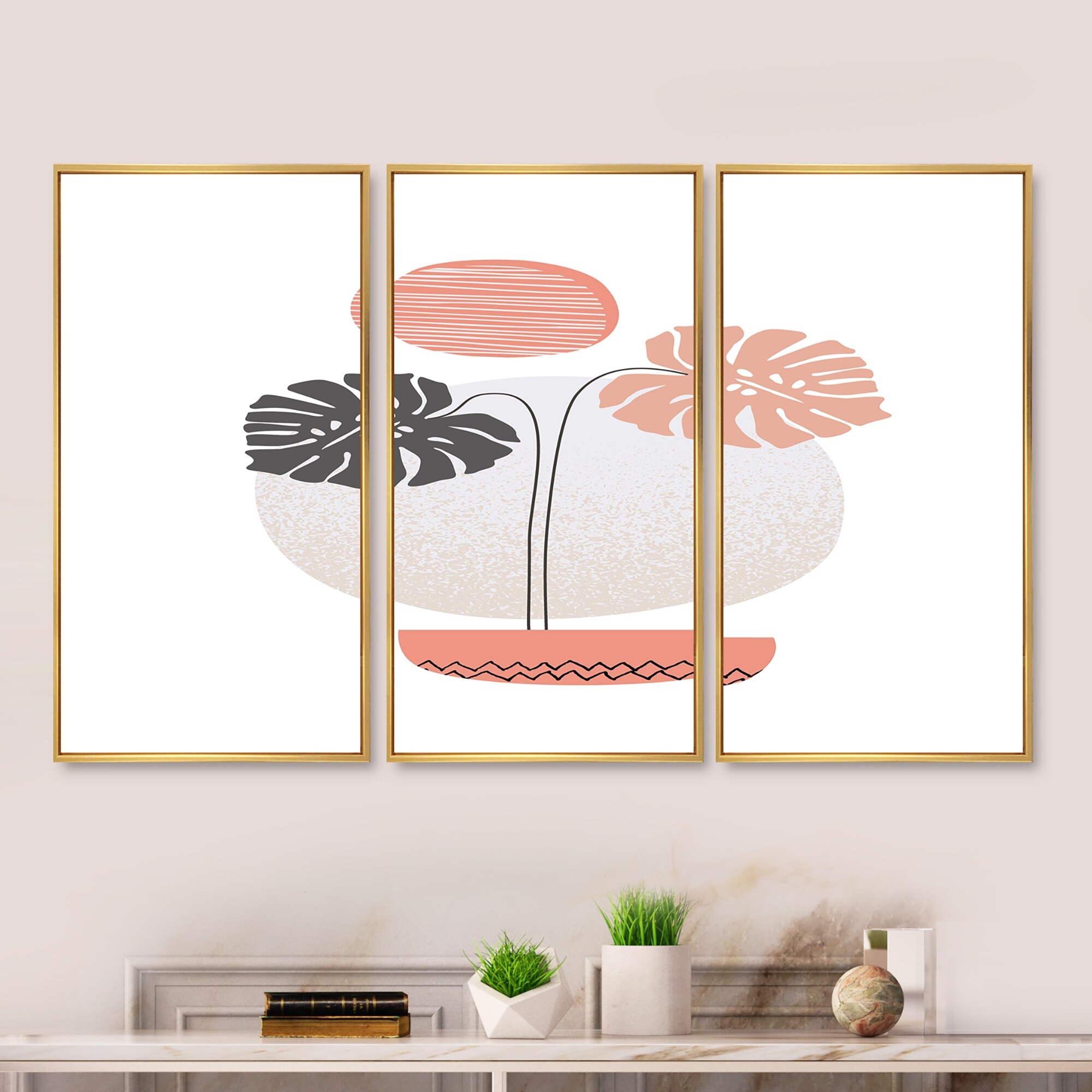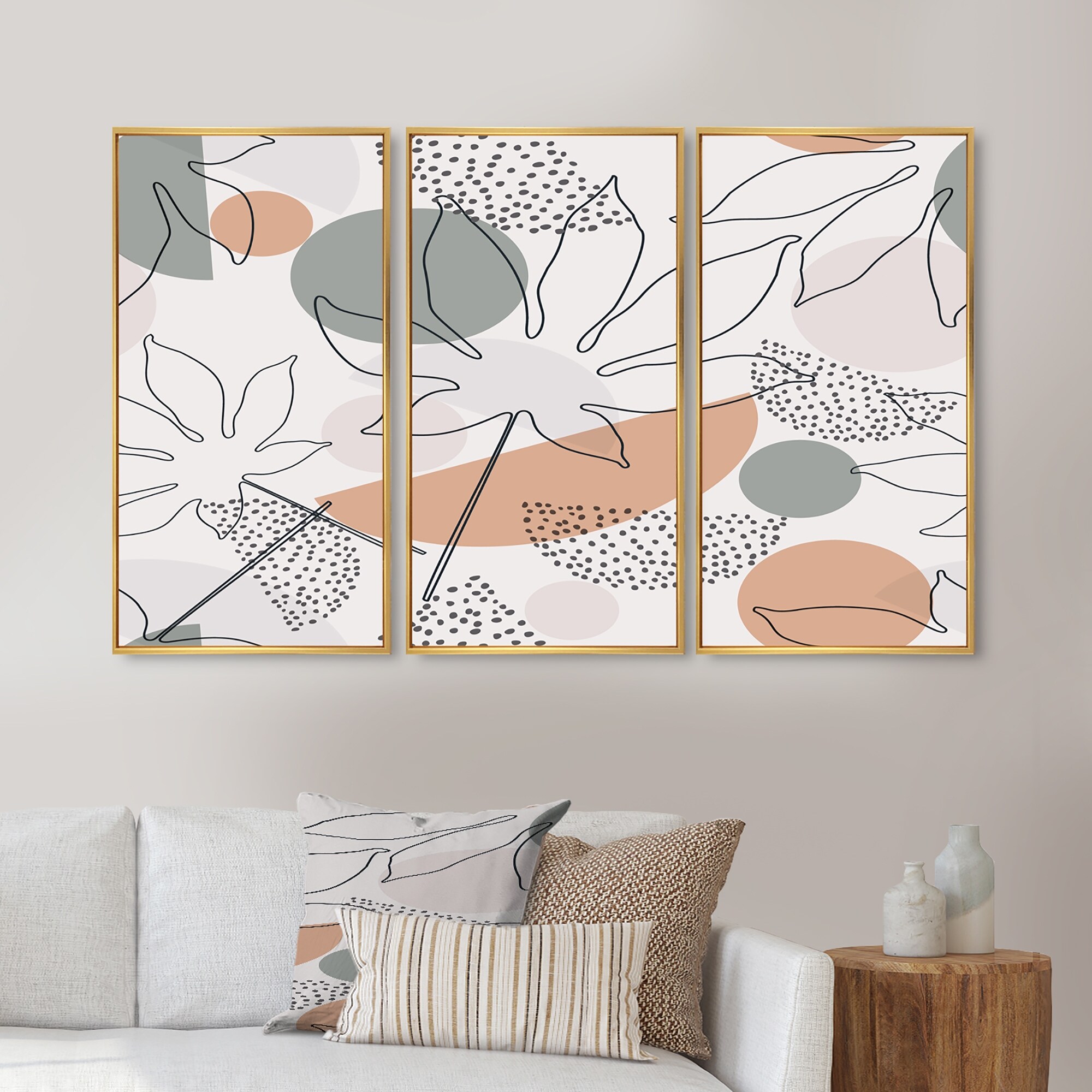 Designart "Tropical Monstera Leaf One Line Art" Modern Framed Canvas Wall Art Print Set of 3 - 4 Colors of Frames