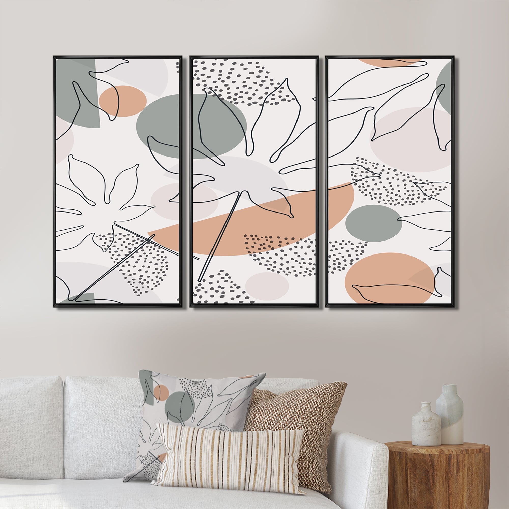 Designart "Abstract One Line Art Tropical Plants II" Tropical Framed Artwork Set of 3 - 4 Colors of Frames