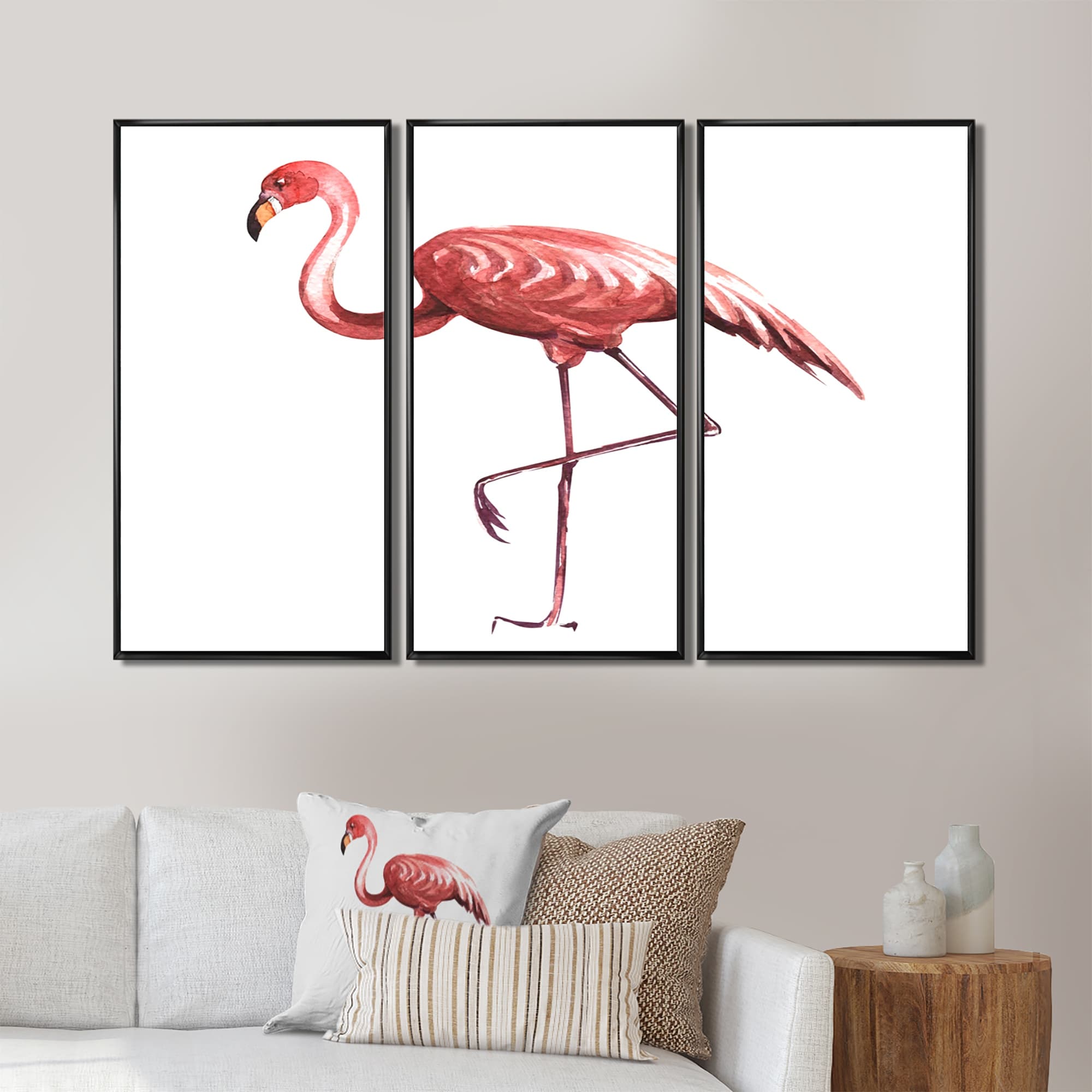 Designart "Pink Flamingo on One Leg" Traditional Framed Art Set of 3 - 4 Colors of Frames