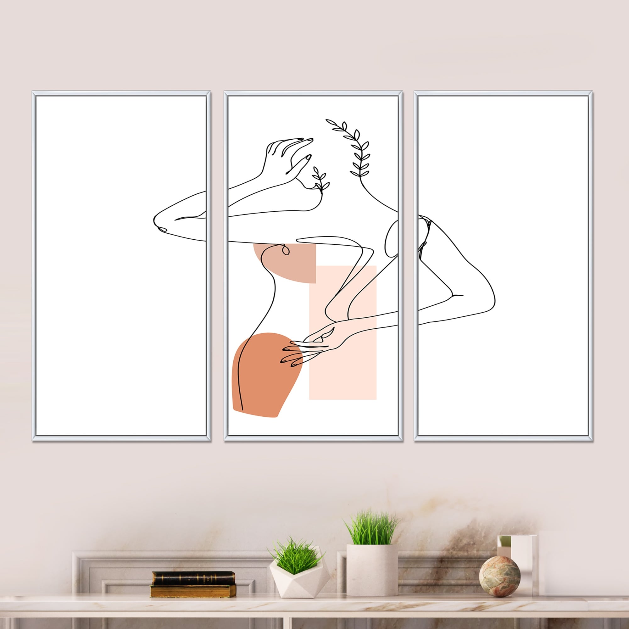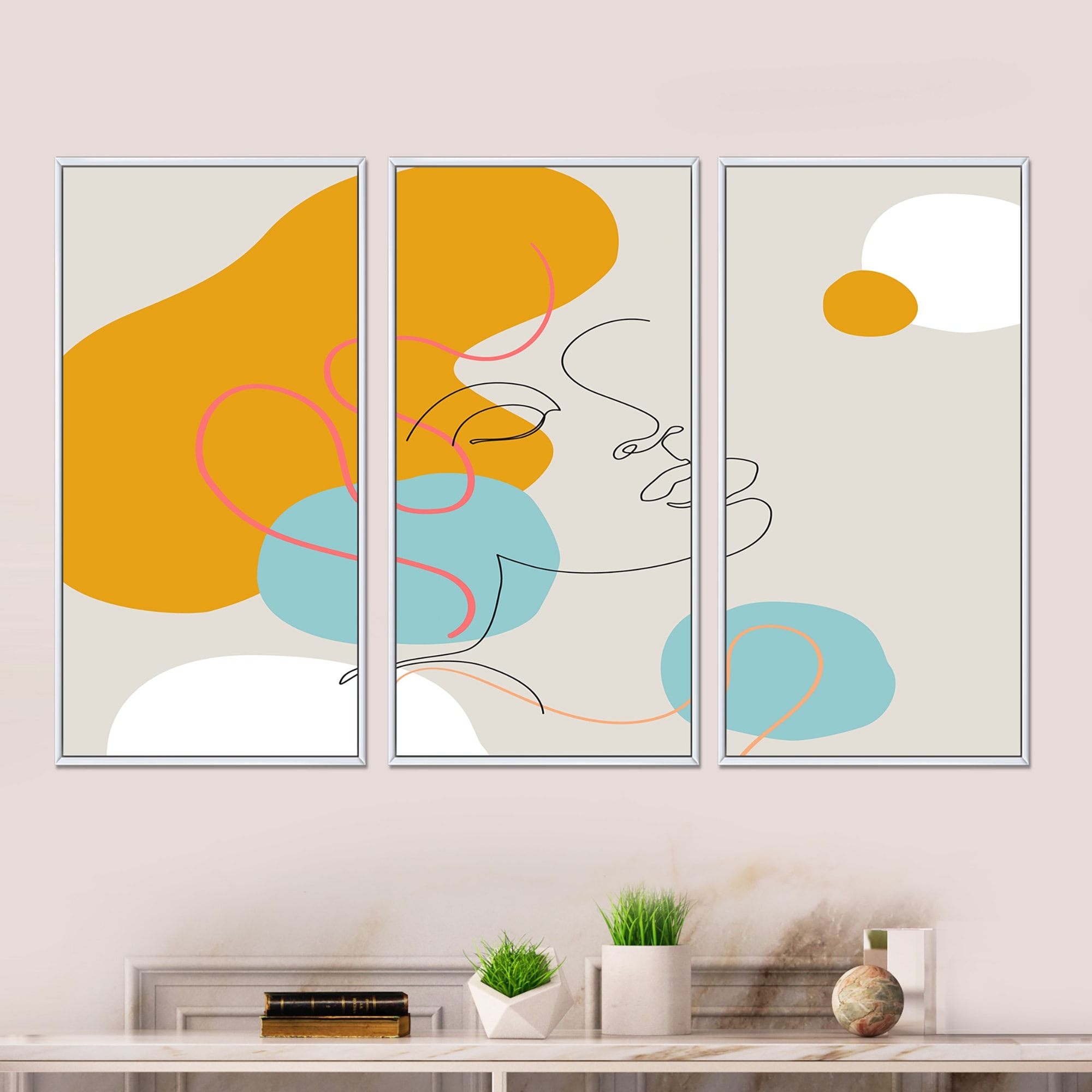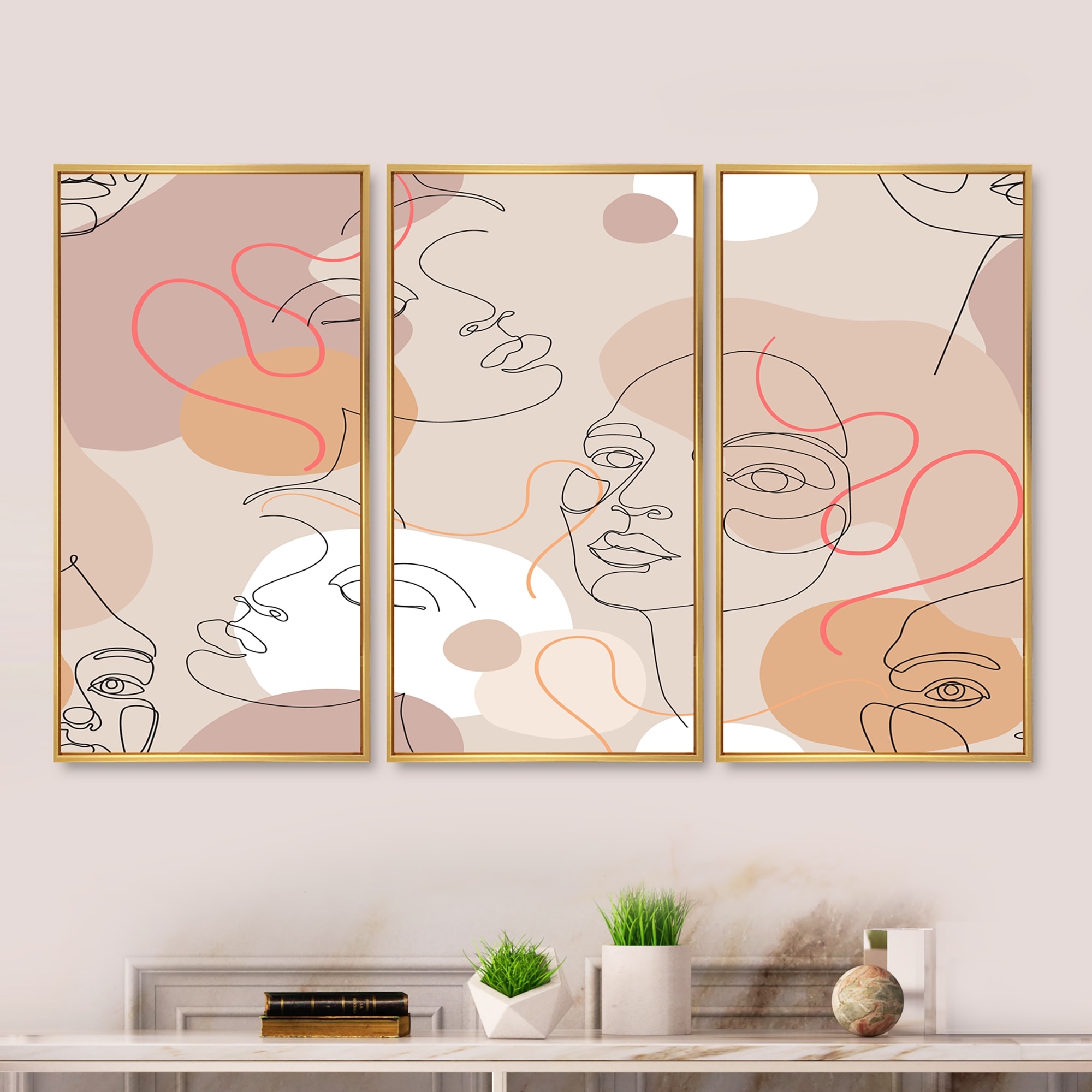 Designart "Abstract One Line Woman Portraits" Modern Framed Canvas Wall Art Print Set of 3 - 4 Colors of Frames