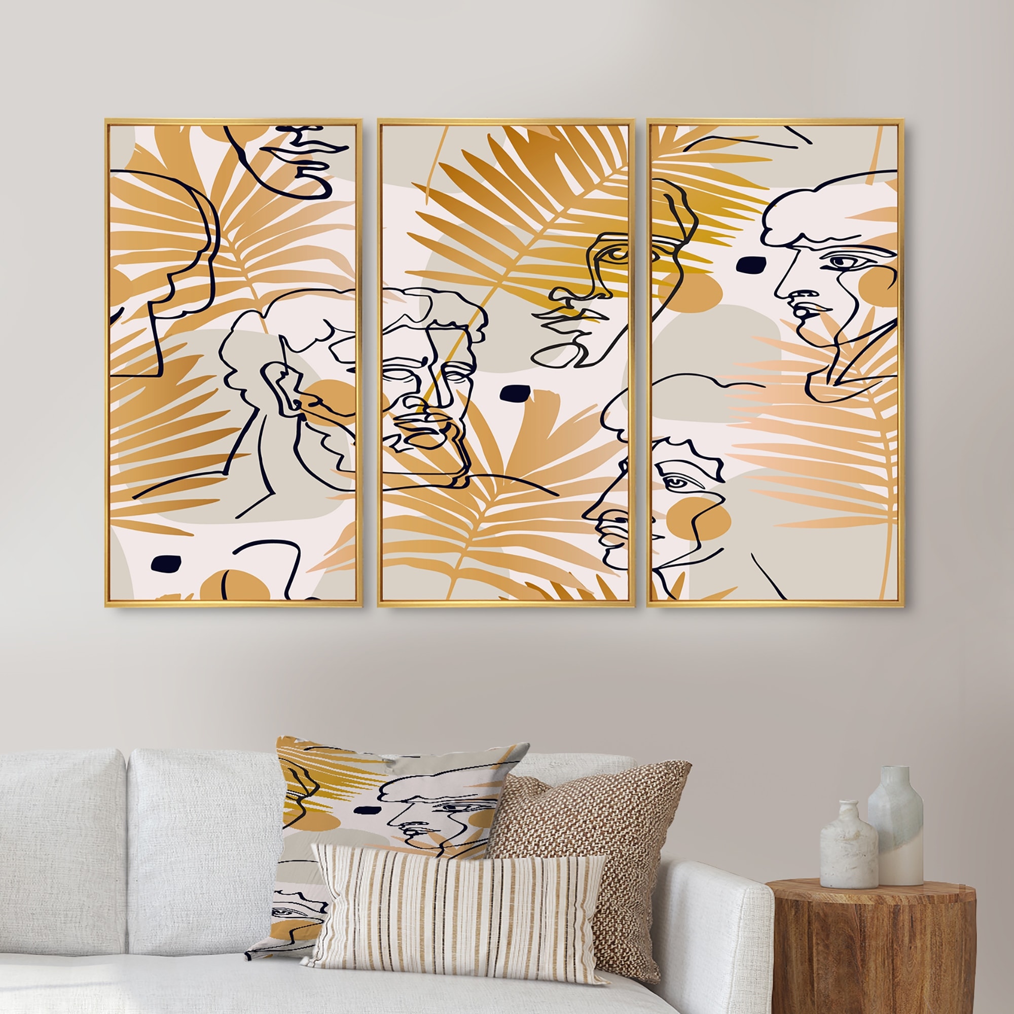 Designart "One Line Art Portrait With Tropical Leaves" Vintage Framed Wall Decor Set of 3 - 4 Colors of Frames