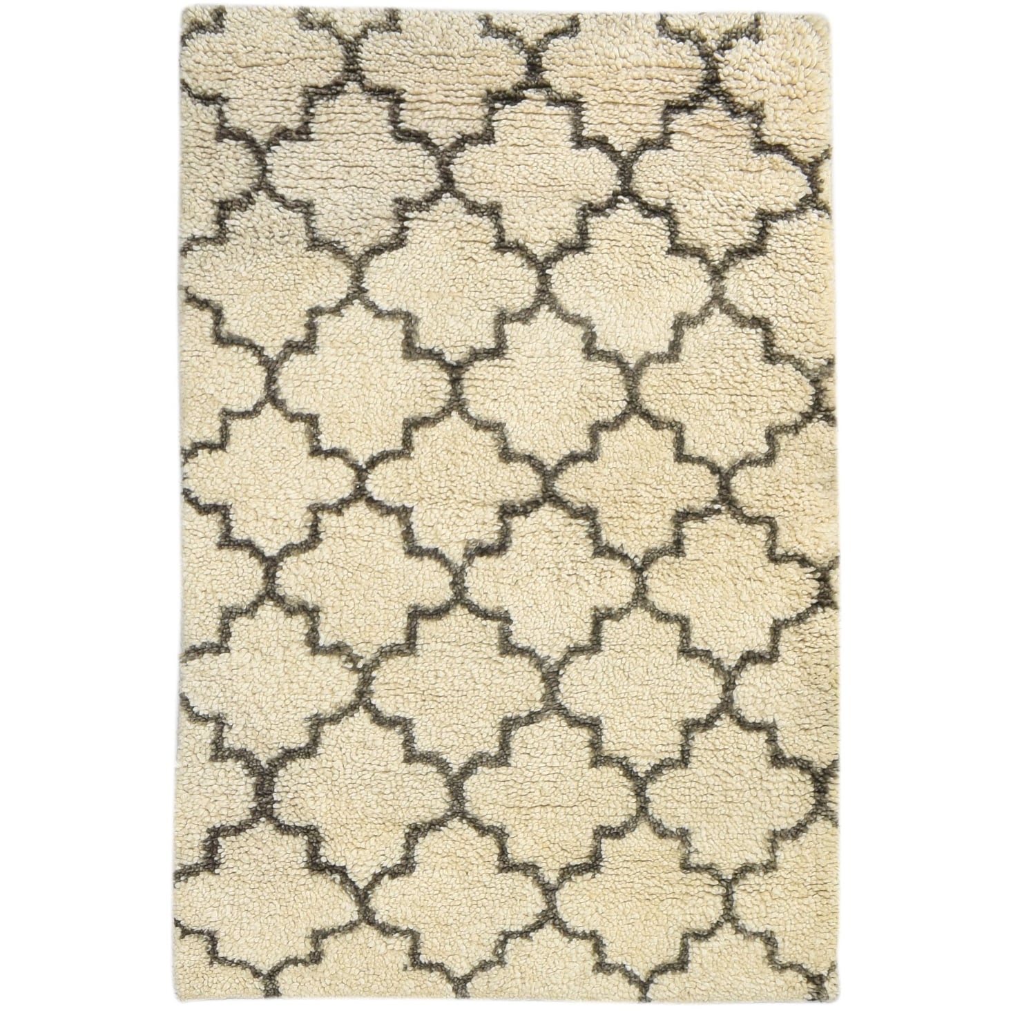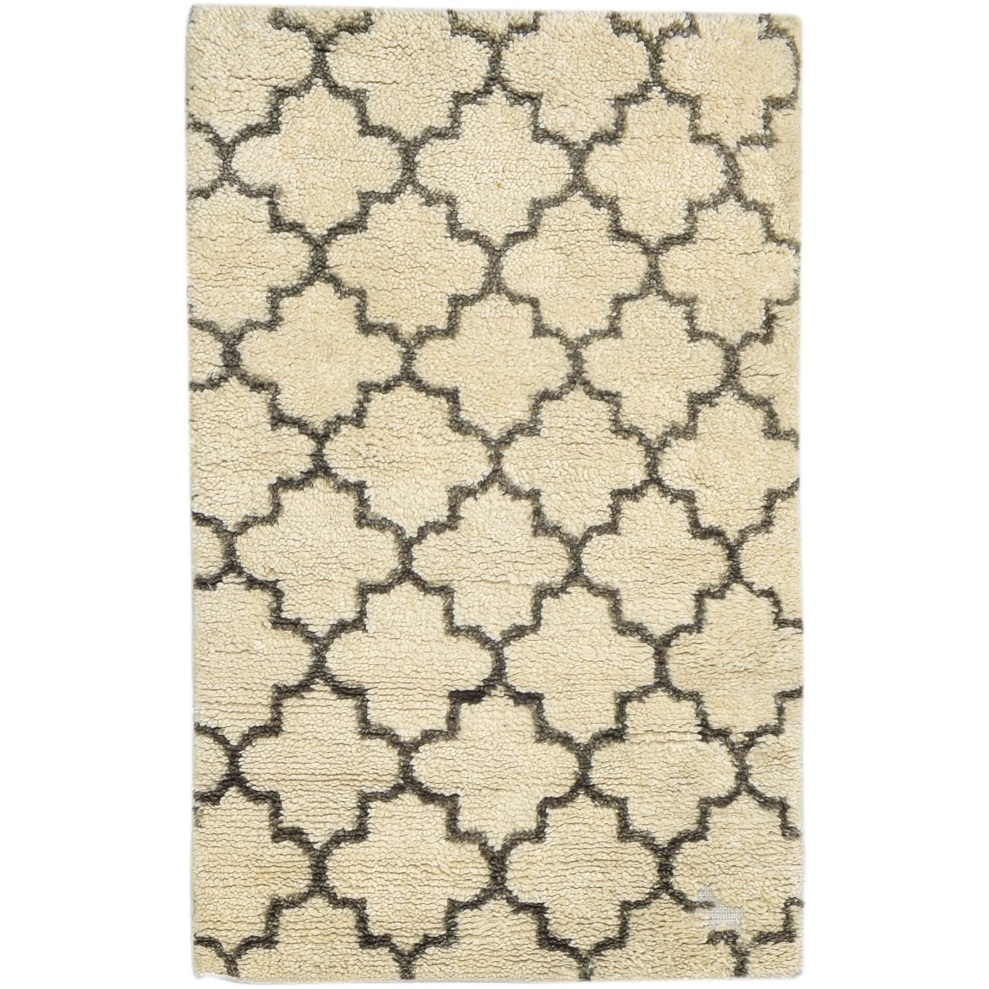 One of a Kind Hand-Knotted Modern & Contemporary 3' x 5' Trellis Wool Ivory Rug - 3'0"x4'8"