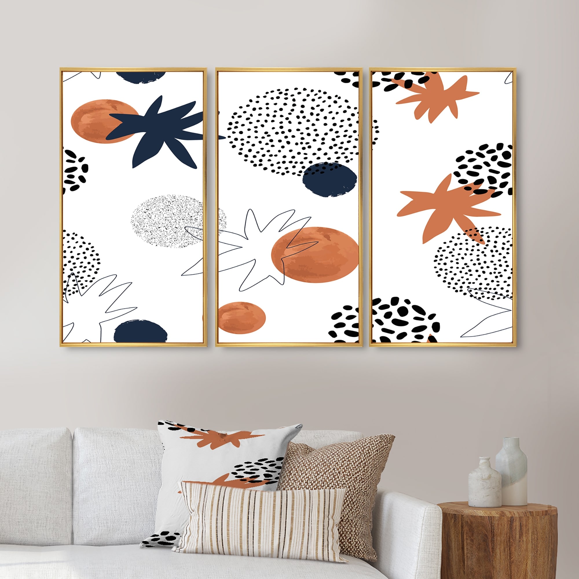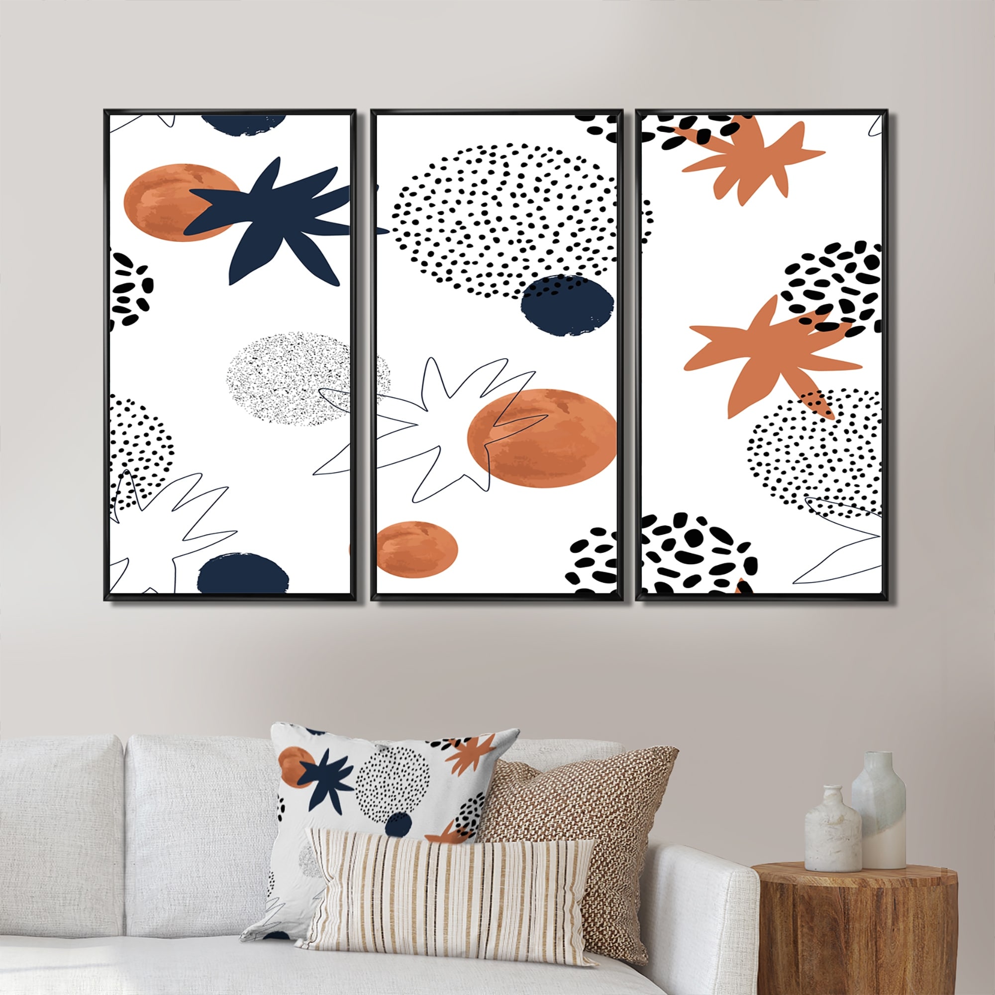 Designart "One Line Silhouettes With Polka Circles" Patterned Framed Art Prints Set of 3 - 4 Colors of Frames