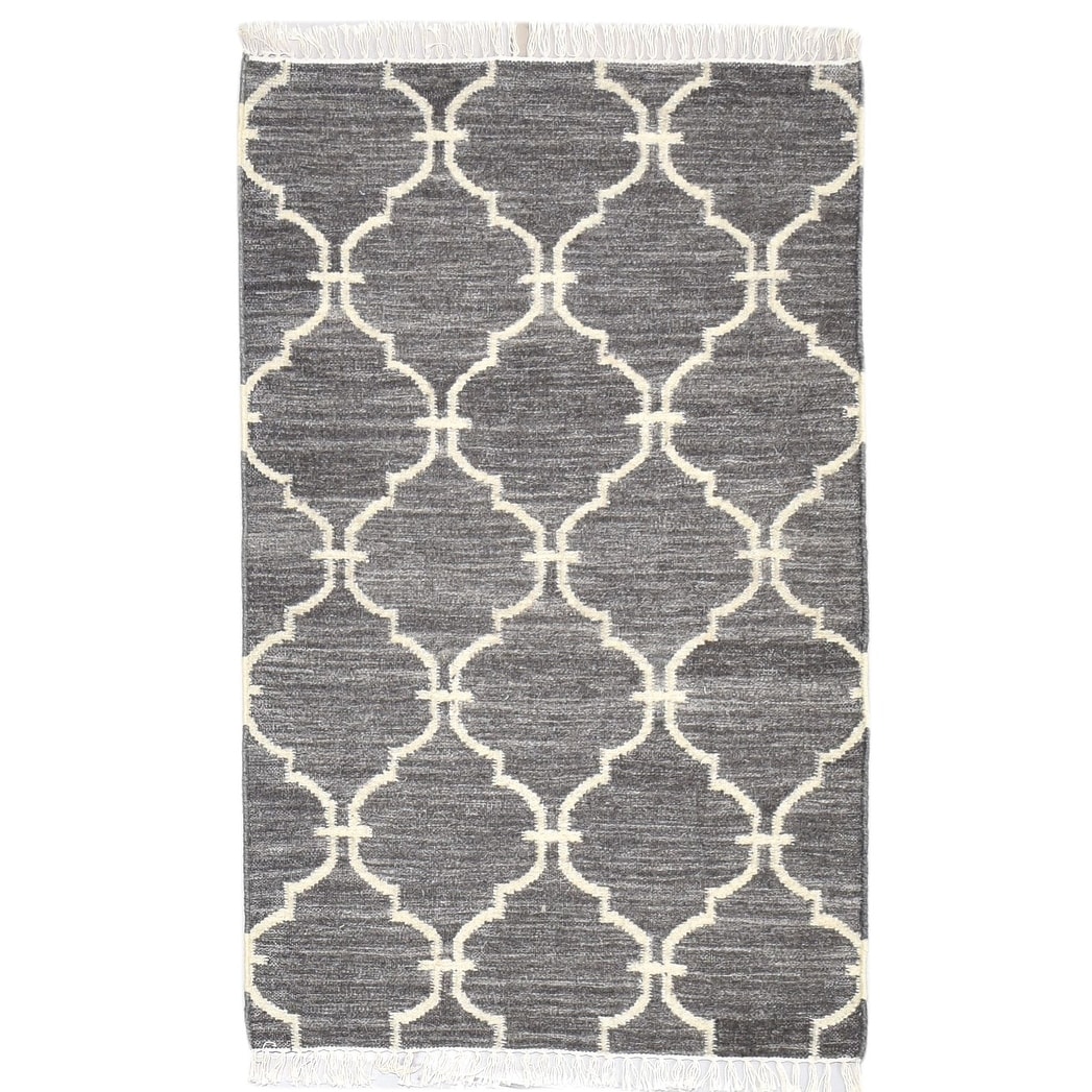 One of a Kind Hand-Knotted Modern & Contemporary 3' x 5' Trellis Wool Ivory Rug - 2'11"x4'8"