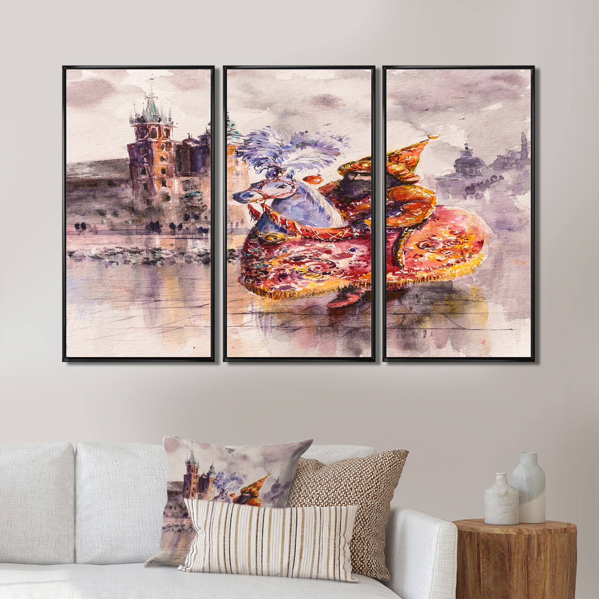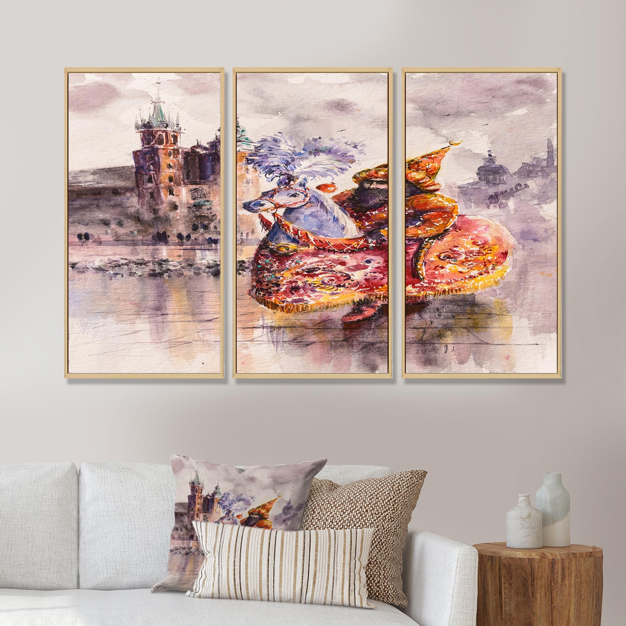 Designart "Lajkonik One of the Symbols of the Cracow" Vintage Framed Wall Art Set of 3 - 4 Colors of Frames