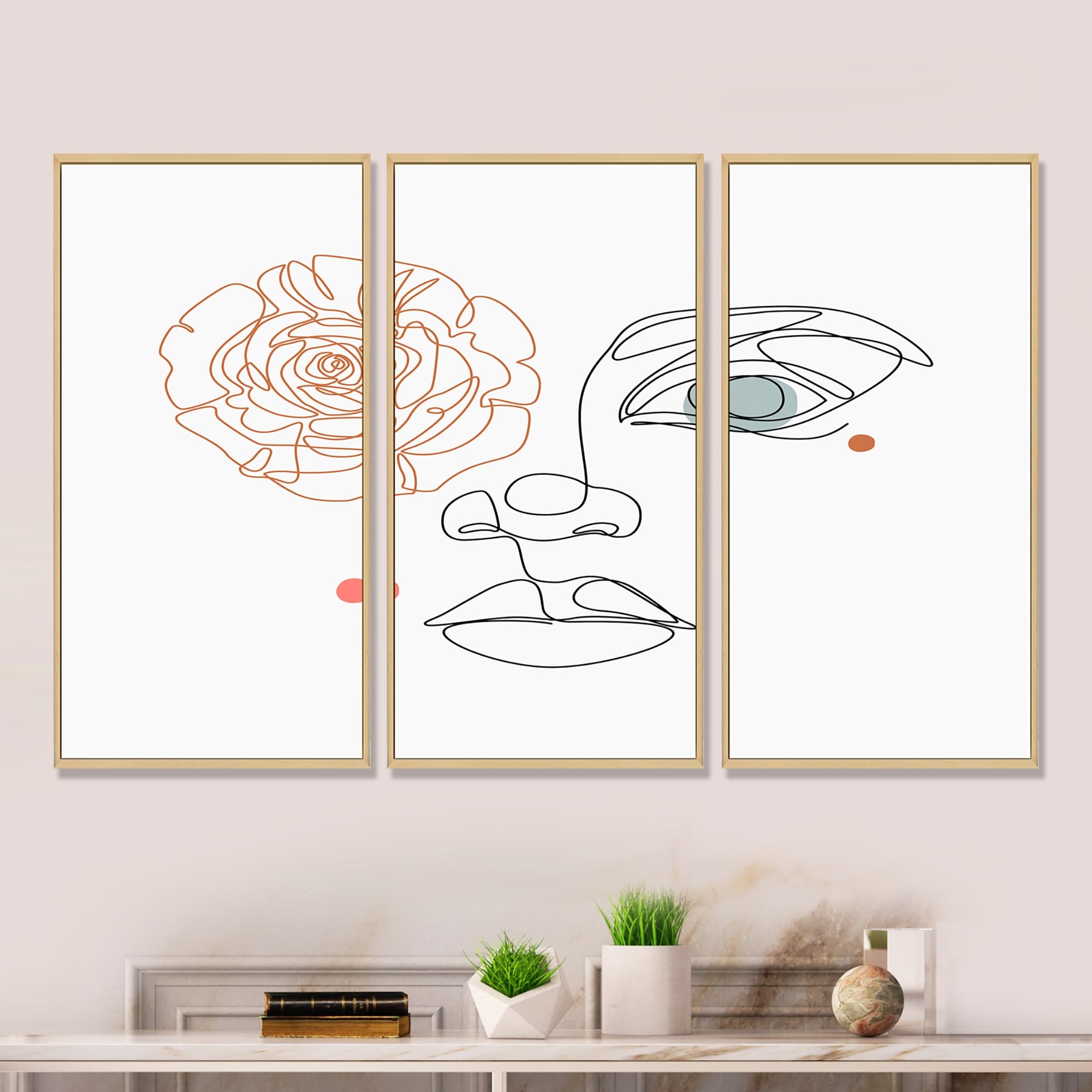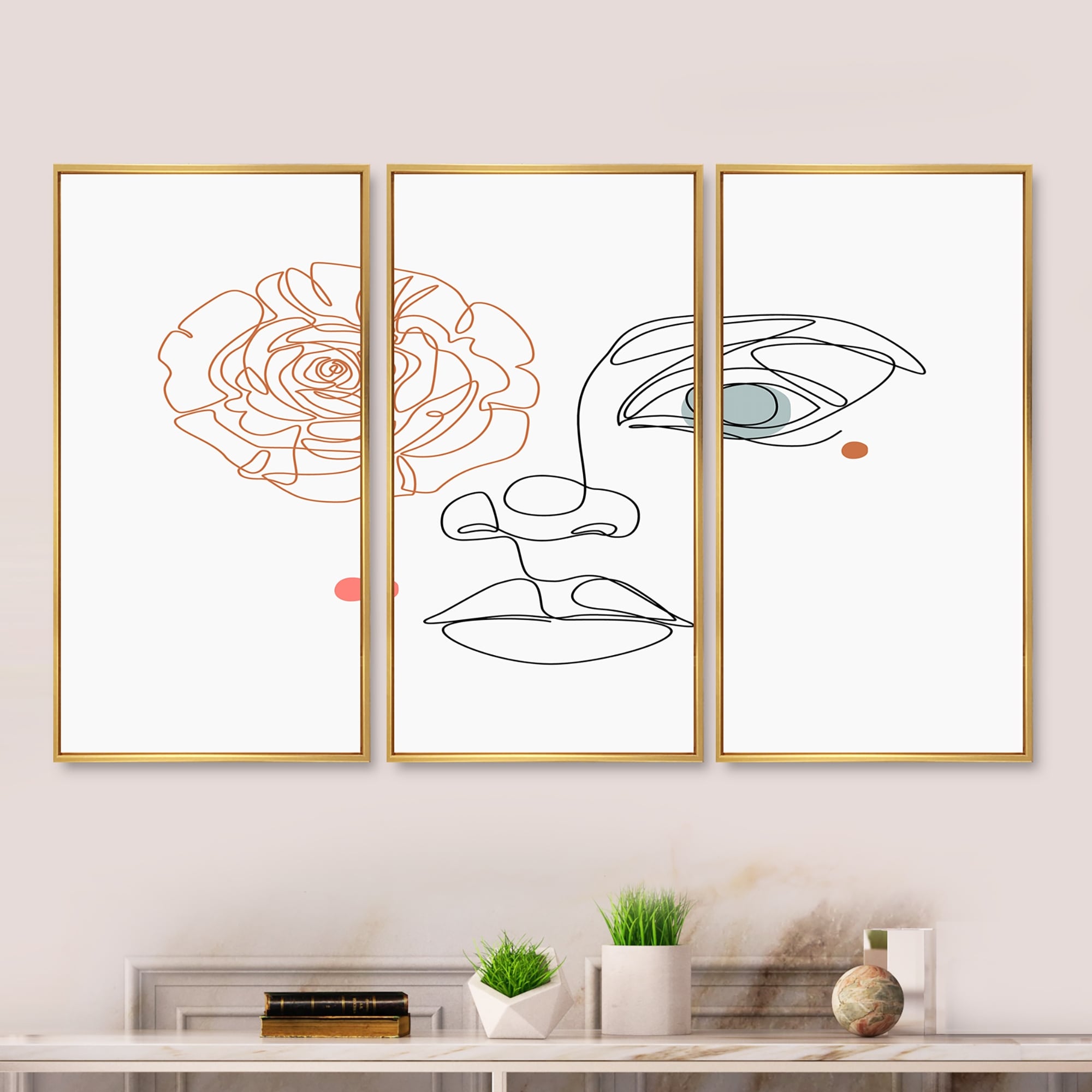 Designart "Female Face One Line Art" Glam Framed Art Set of 3 - 4 Colors of Frames