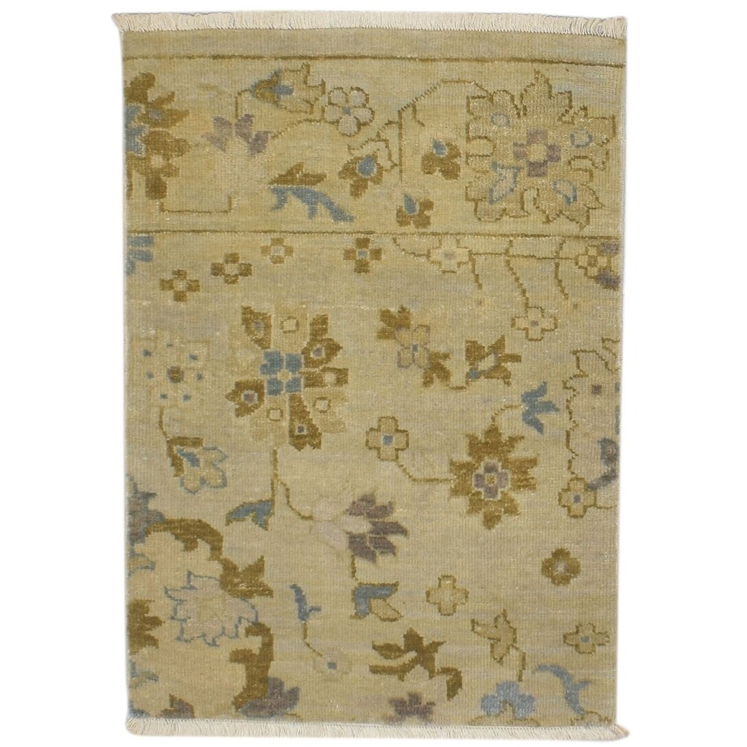 One of a Kind Hand-Knotted Persian 2' x 3' Oriental Wool Beige Rug - 2'0"x3'0"