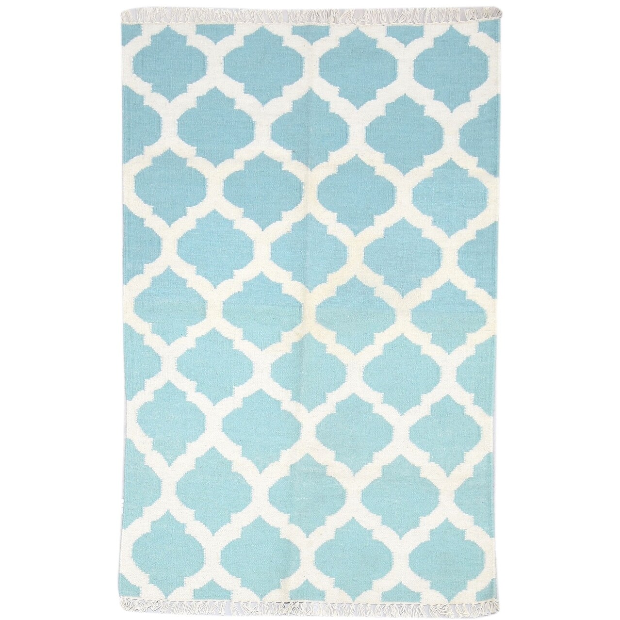 One of a Kind Flatweave Modern 3' x 5' Trellis Wool Blue Rug - 3' x 5'