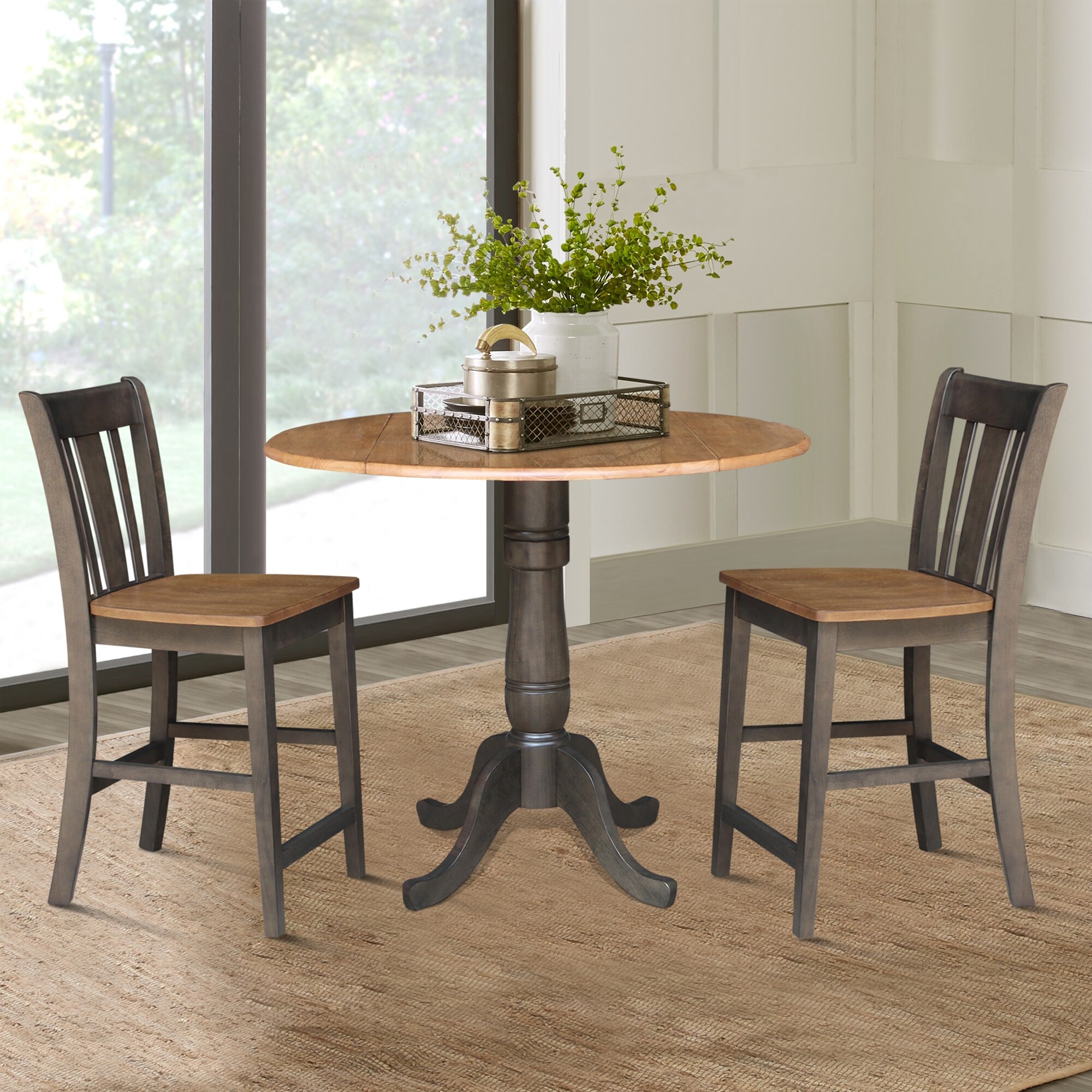 42 in. Round Dual Drop Leaf Counter Height Dining Table with 2 Splatback Stools - 3 Piece Set