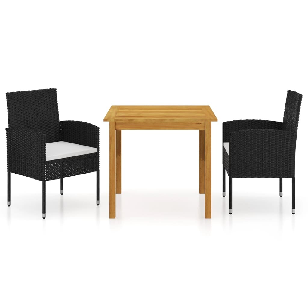 vidaXL 3 Piece Patio Dining Set with Cushions Black Poly Rattan - 22.4" x 24.6" x 42.9"