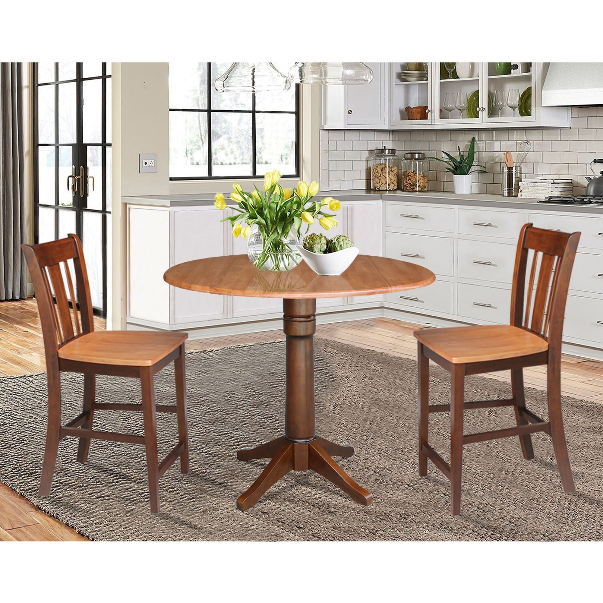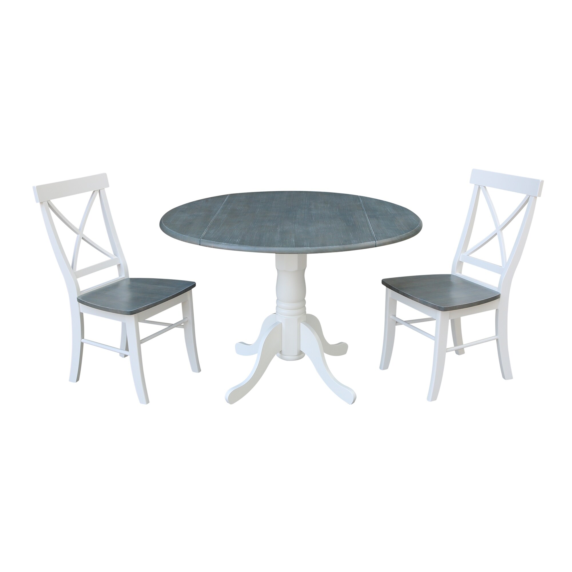 42 in. Drop Leaf Table with 2 Cross Back Dining Chairs - 3 Piece Set