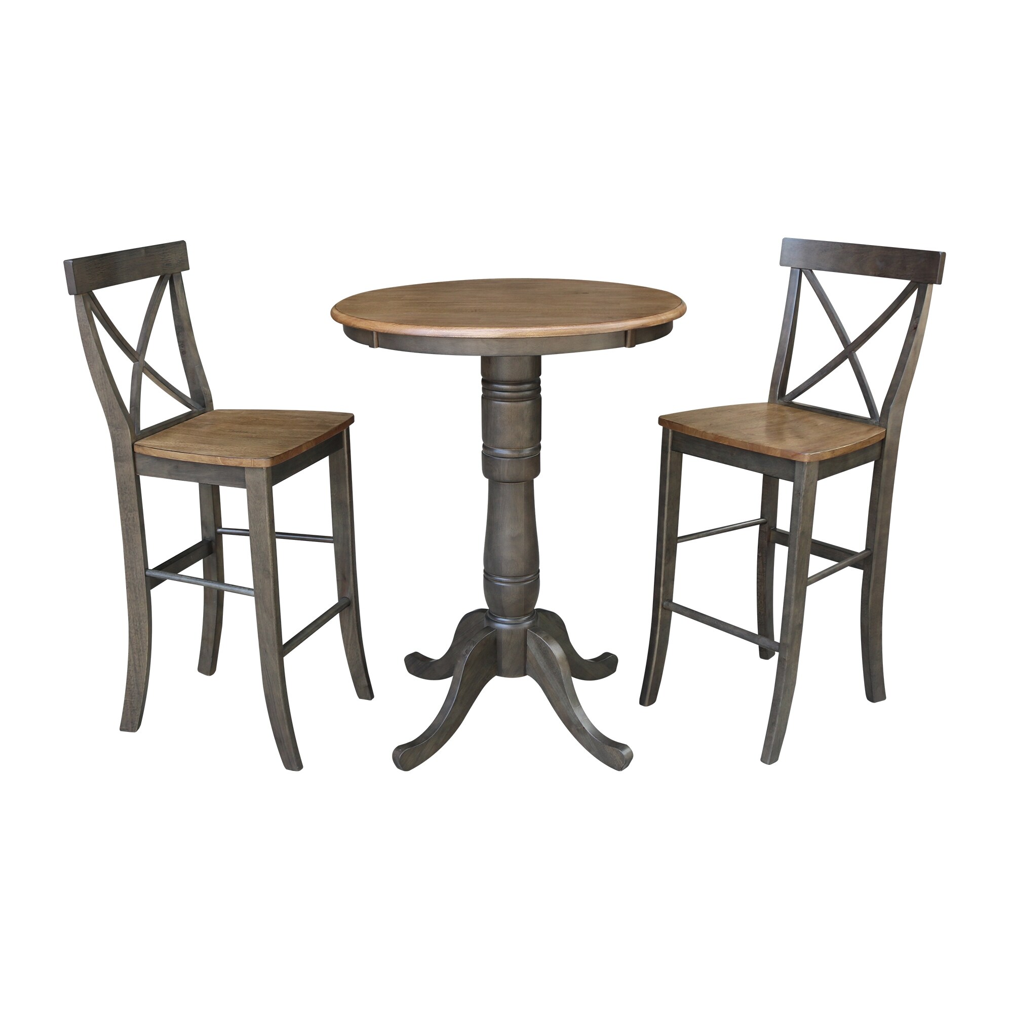 30" Round Bar Height Table With 2 X-Back Stools - 3 Piece Set