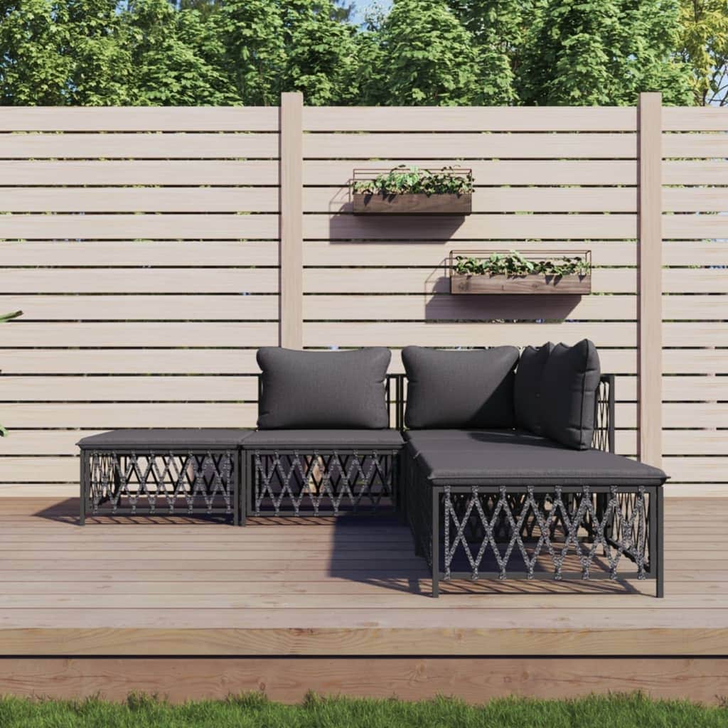 3 Piece Patio Lounge Set with Cushions Anthracite Poly Rattan