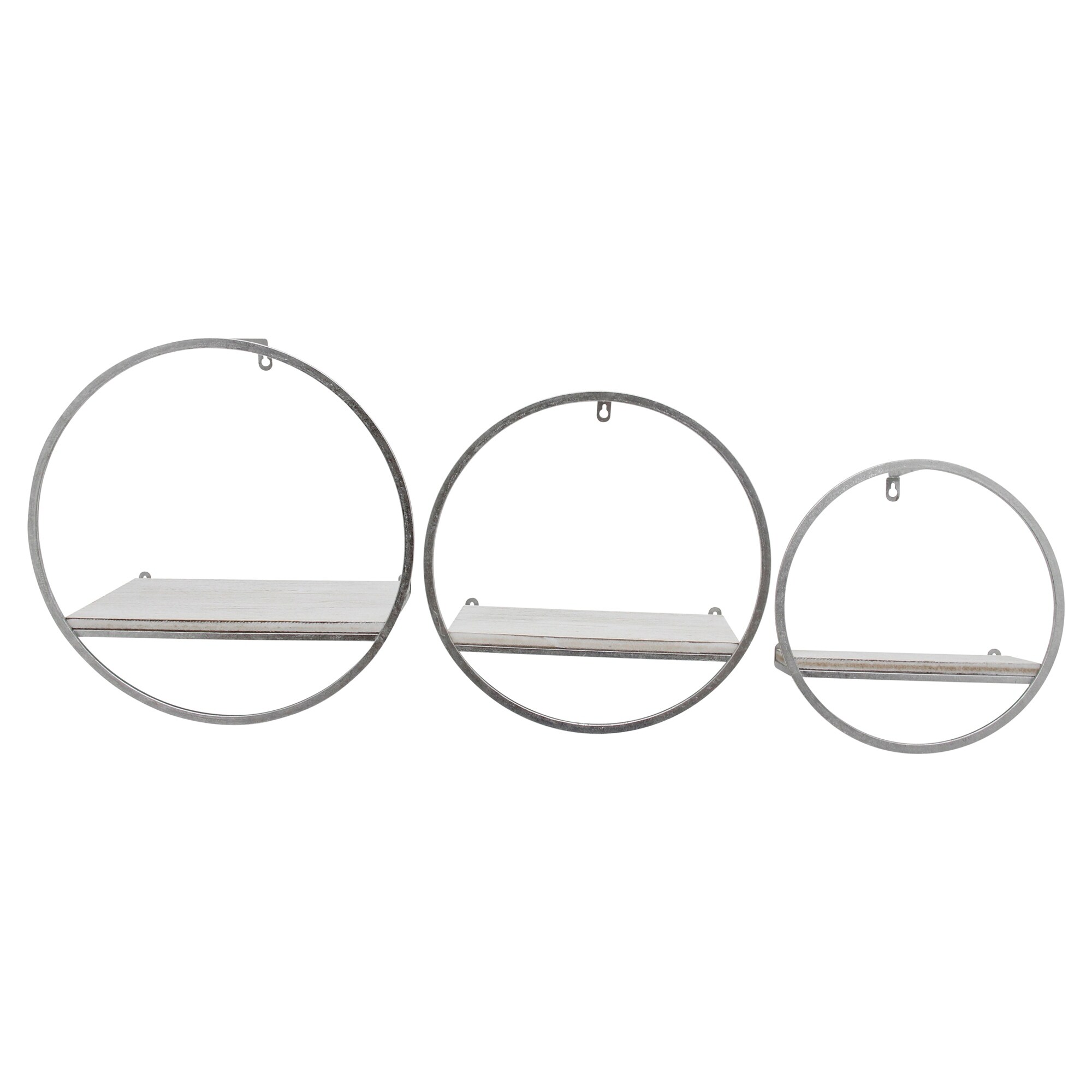 Set of 3 Wood, metal Wall Shelves, White, silver 8"H - 16.0" x 16.0" x 8.0"