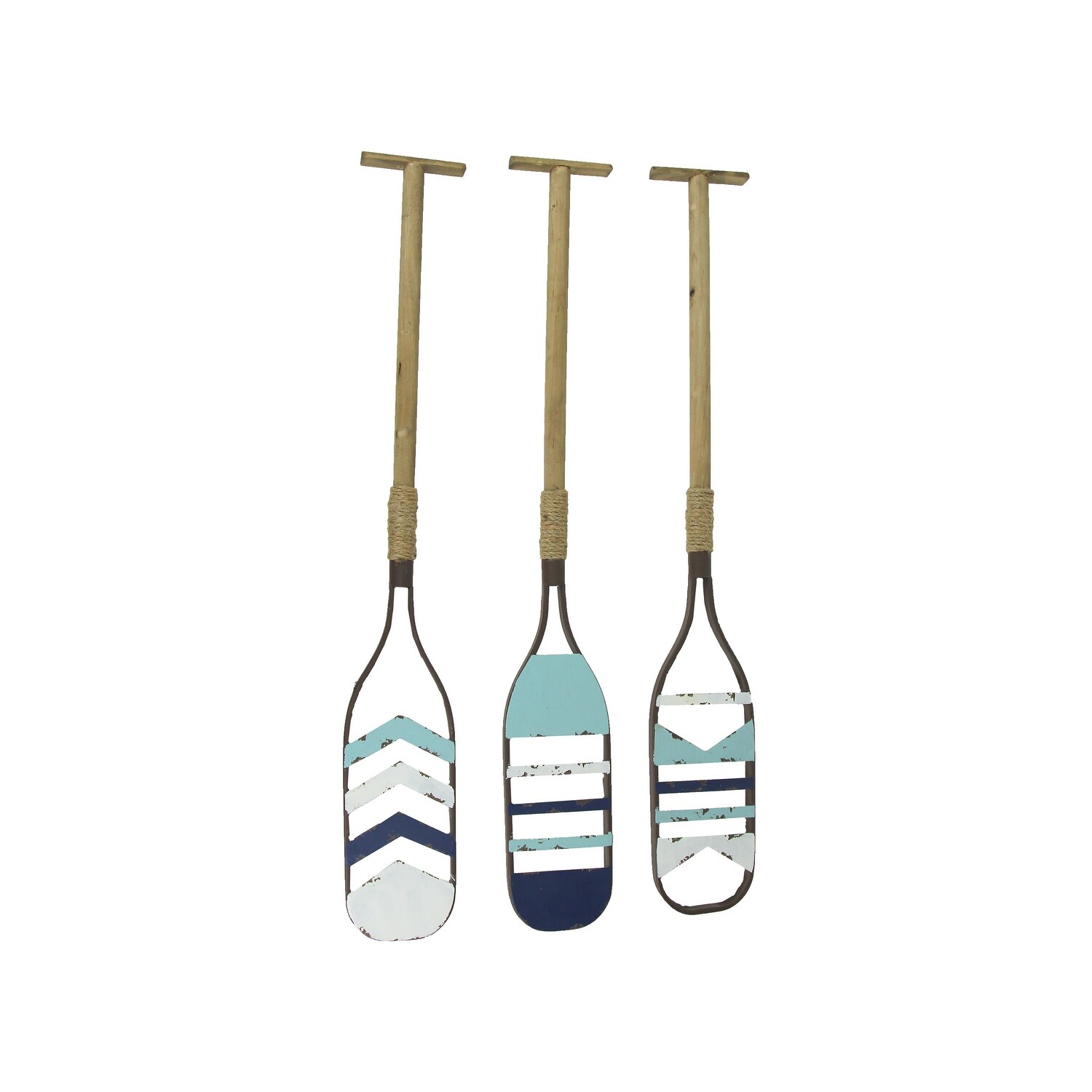 Set of 3 Wood Metal Boat Paddle Hanging Wall Decor Nautical Art