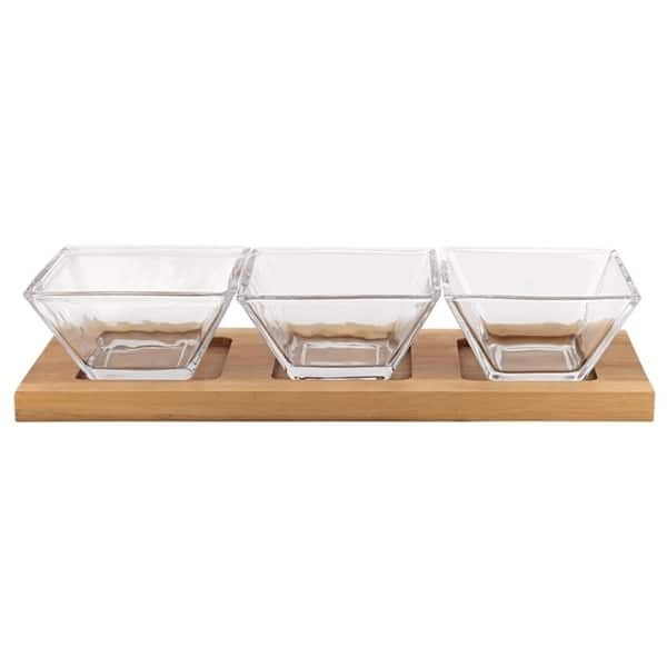 Hostess Set - 4 pc With 3 Glass Condiment on a Wood Tray