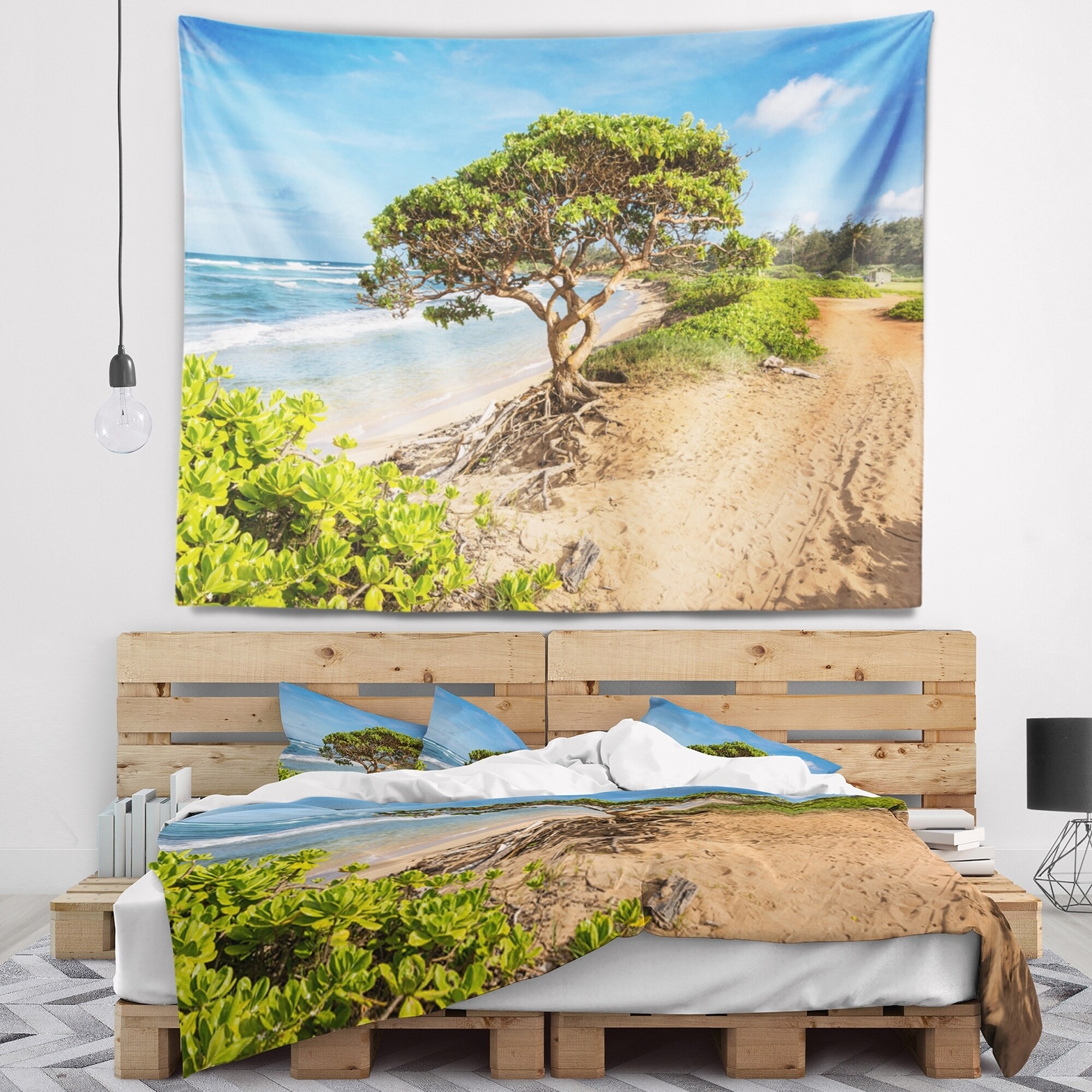 Designart 'Green Tree on Beach in Kauai Hawaii' Seashore Wall Tapestry