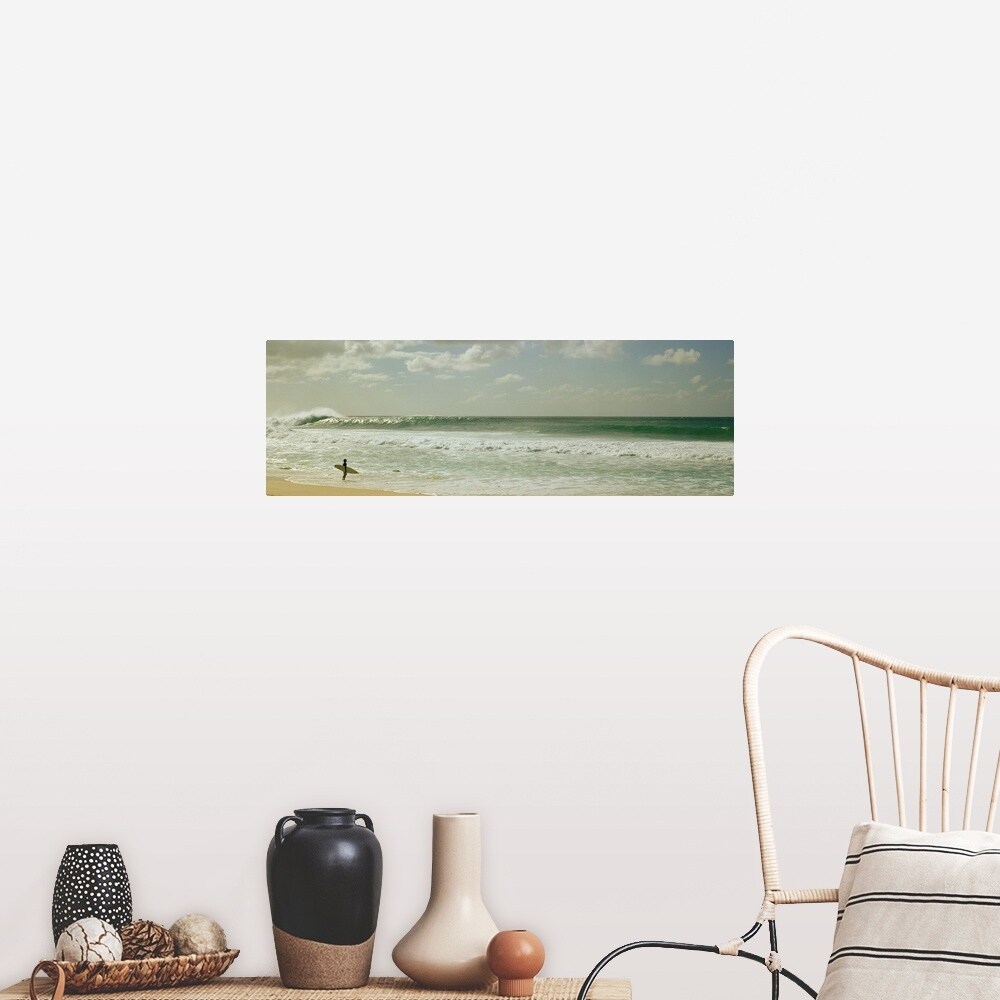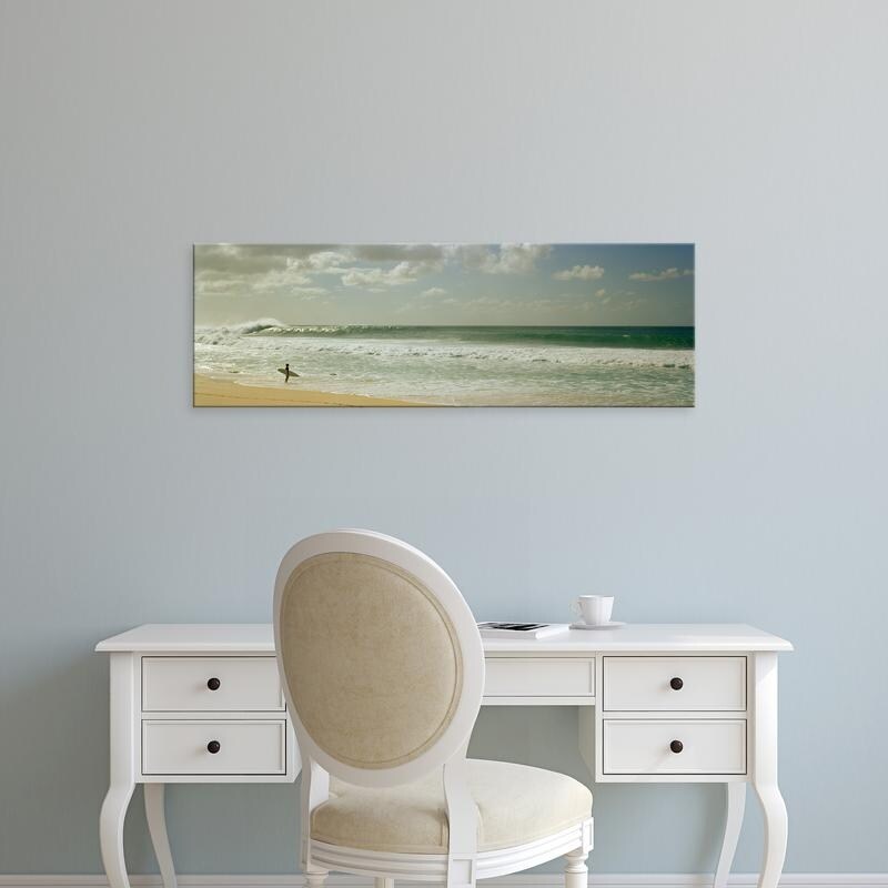 Easy Art Prints Panoramic Images's 'Surfer standing on the beach, North Shore, Oahu, Hawaii, USA' Premium Canvas Art
