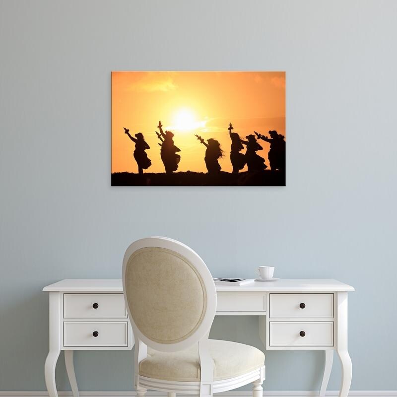 Easy Art Prints Panoramic Images's 'Silhouette of hula dancers at sunrise, Molokai, Hawaii, USA' Premium Canvas Art